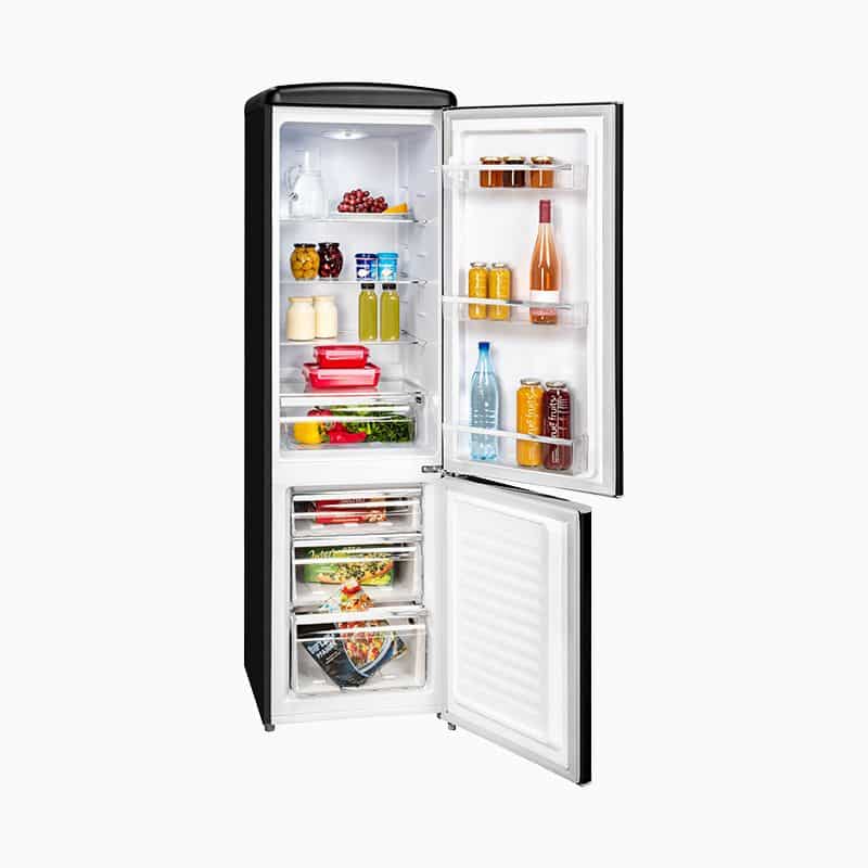 Combina frigorifica de la brandul german Exquisit are o capacitate generoasa de 244 litri, dintre care 63 litri pentru congelator, ceea ce-l face ideal pentru o orice locuinta. Interiorul permite depozitarea alimentelor cat mai practic, usa avand 3 compartimente potrivite pentru depozitarea sticlelor de apa, lapte si multe altele.