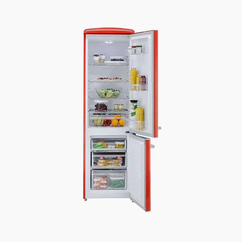 Un frigider retro este o reinterpretare nostalgica a electrocasnicelor clasice din anii `70, aducand un farmec vintage intr-o casa moderna. Cu forme rotunjite si detalii cromate, acest frigider imbina estetica retro cu functii inovative.