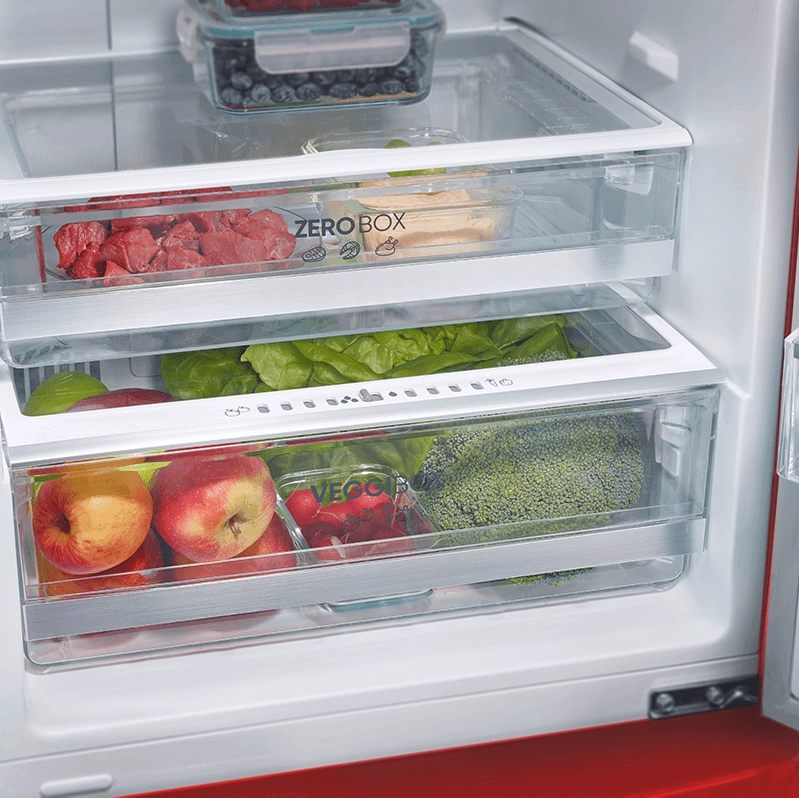 Cosul pentru fructe si legume creeaza conditii perfecte pentru acestea, cu un grad de umiditate de pana 90% si temperatura de 5°C. Astfel, alimentele vor rezista un timp indelungat. Sertarul Zero Box este ideal pentru branzeturi, carne si peste. Acesta are o temperatura de 0°C in interior, ce ajuta la pastrarea optima a alimentelor.