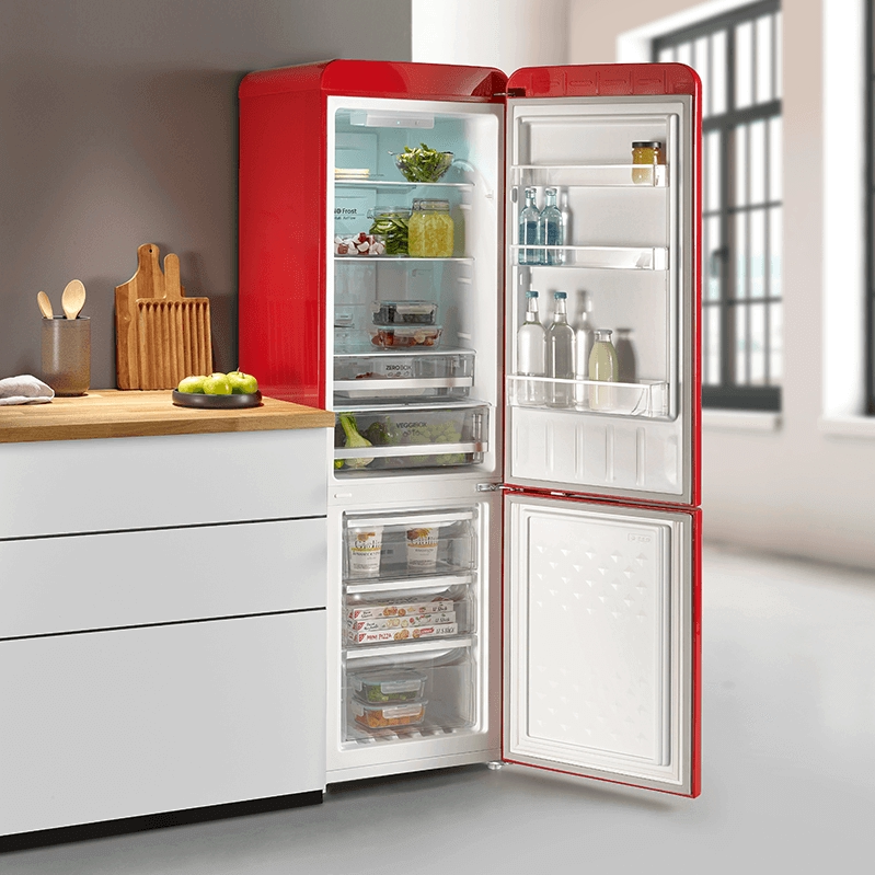 Combina frigorifica Retro de la Severin este un aparat de inalta calitate, eficient din punct de vedere energetic si care ofera spatiu amplu de depozitare pentru alimente si bauturi.