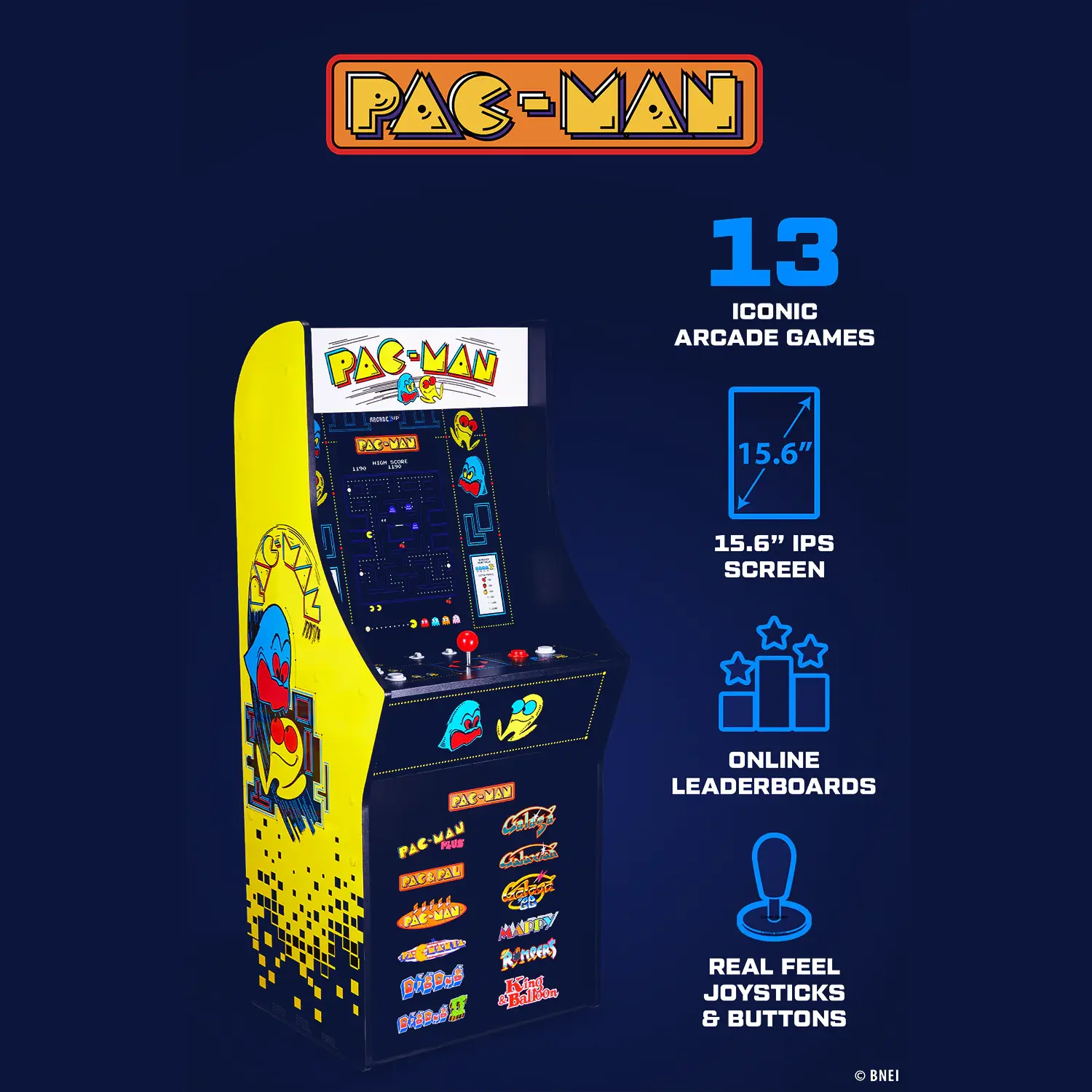 Descopera exclusivitatea experientei Arcade1UP cu consola verticala Pac-Man Classic SE! Acest cabinet retro dispune de 13 jocuri de tip arcade, printre care si clasicele Pac-Man™, Pac-Mania™, Dig Dug™ si Galaga™.