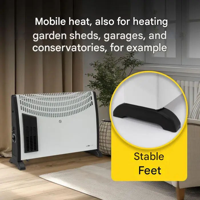 Convectorul electric de la Clatronic este solutia perfecta pentru a te bucura de caldura oriunde iti doresti, dar nu este limitat incaperilor! Aparatul poate fi montat oriunde, de la garaje pana la foisoare, iar datorita celor 3 trepte de putere, ai control deplin asupra temperaturii. Termostatul ajustabil faciliteaza setarea precisa a ambientului, pe cand protectiile anti-inghet si supraincalzire garanteaza siguranta in conditii nefavorabile.