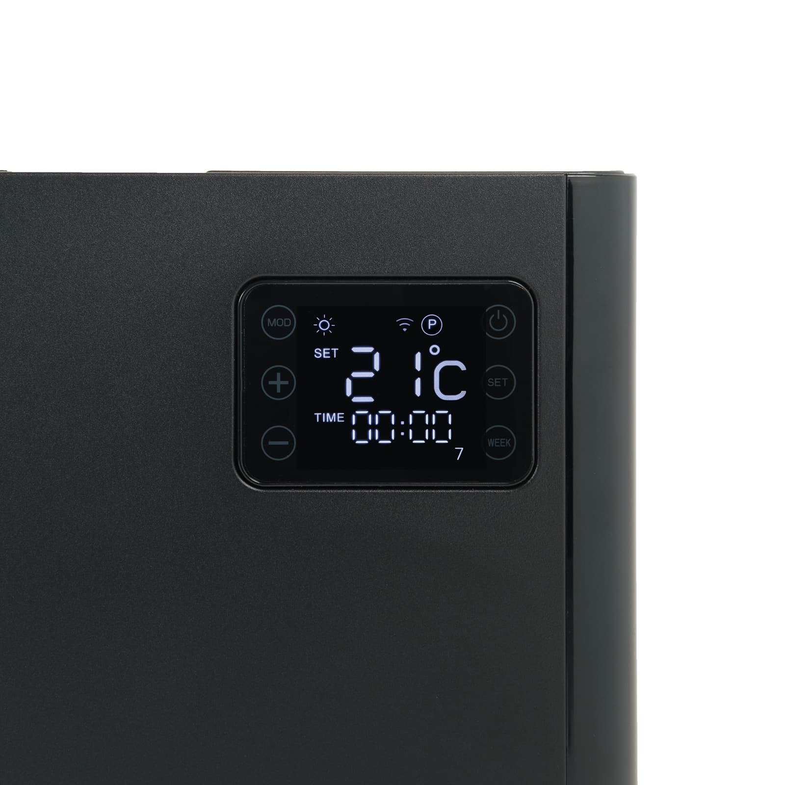 Convectorul are Wi-Fi integrat, ceea ce va permite sa-l controlati cu ajutorul aplicatiei, pe smartphone. Mai mult, puteti folosi telecomanda sau panoul tactil pentru a seta functiile preferate.