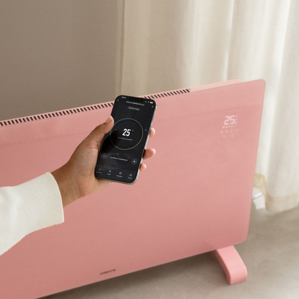 Multumita WiFi-ului integrat, convectorul poate fi controlat cu ajutorul telefonului tau sau direct din panoul tactil.