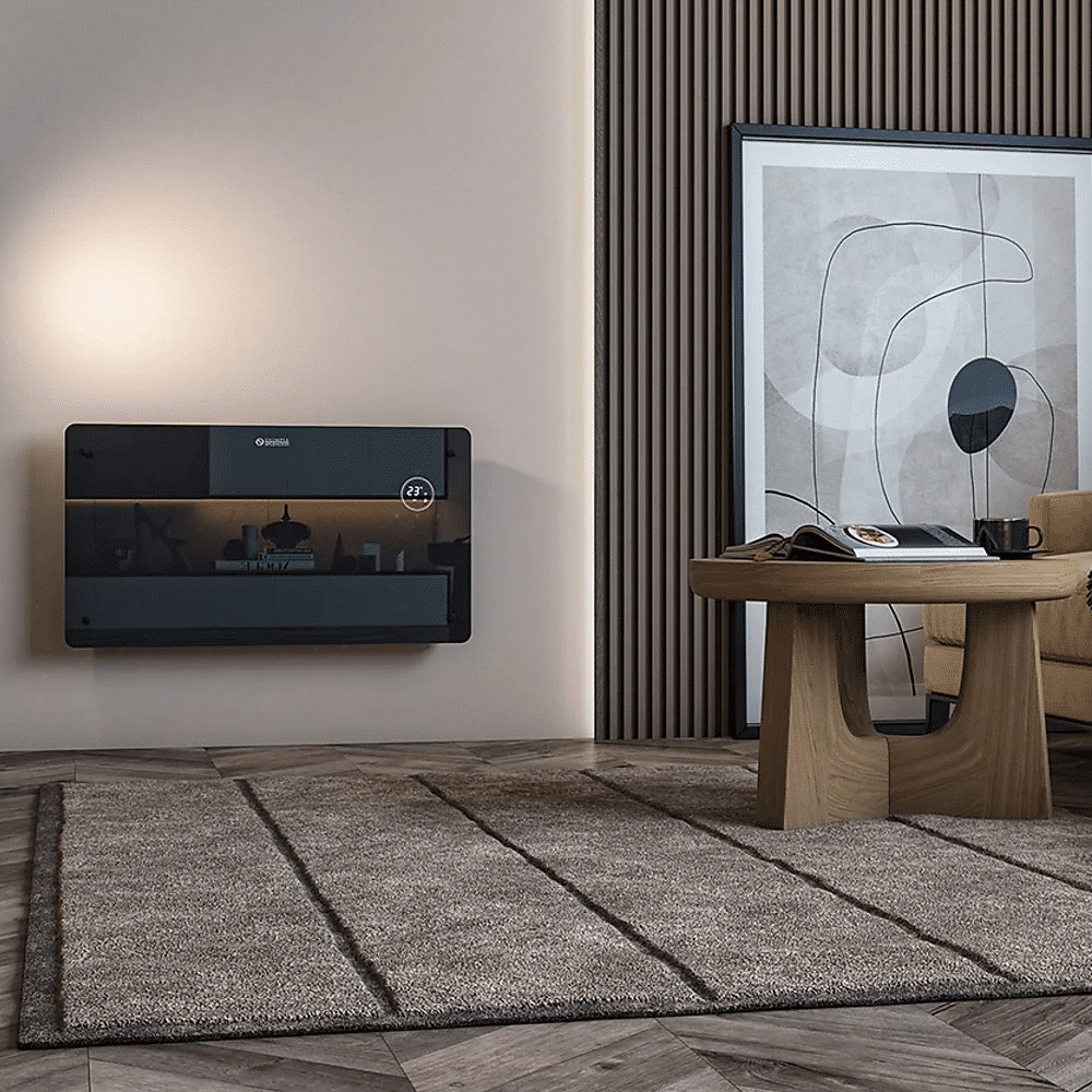 Panoul frontal din sticla, prevazut cu un ecran touchscreen integrat, confera convectorului un aspect contemporan si sofisticat. Controlul acestuia este la cea mai inalta tehnologie, asigurandu-ti o experienta de utilizare simpla si intuitiva. Cu ajutorul conectivitatii Wi-Fi integrate, poti controla confortabil convectorul de la distanta, folosind aplicatia OS Home.
