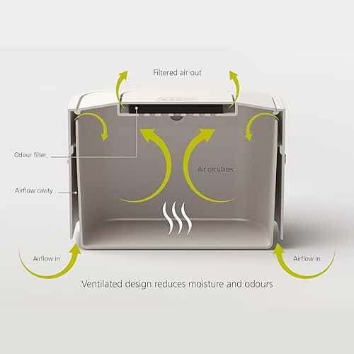 Marele avantaj al acestui cos de gunoi este filtrul de carbune activ ce elimina mirosurile neplacute si tine departe umiditatea.