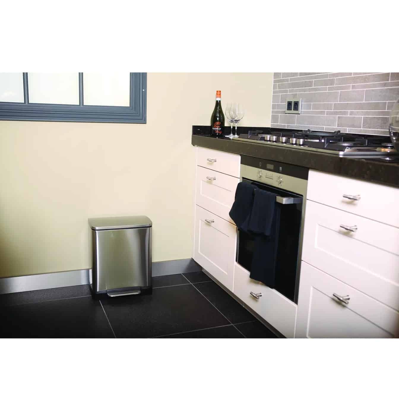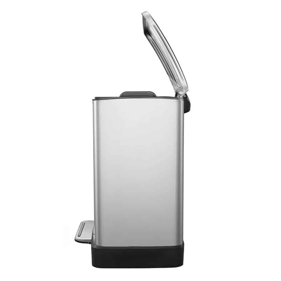 Cosul E-Cube este fabricat din materiale premium, avand o carcasa rezistenta din otel inoxidabil anti-amprente. Cosul are un design compact, care economiseste spatiul, si 2 recipiente detasabile de 10 respectiv 9 litri, facandu-l perfect pentru sortarea deseurilor.