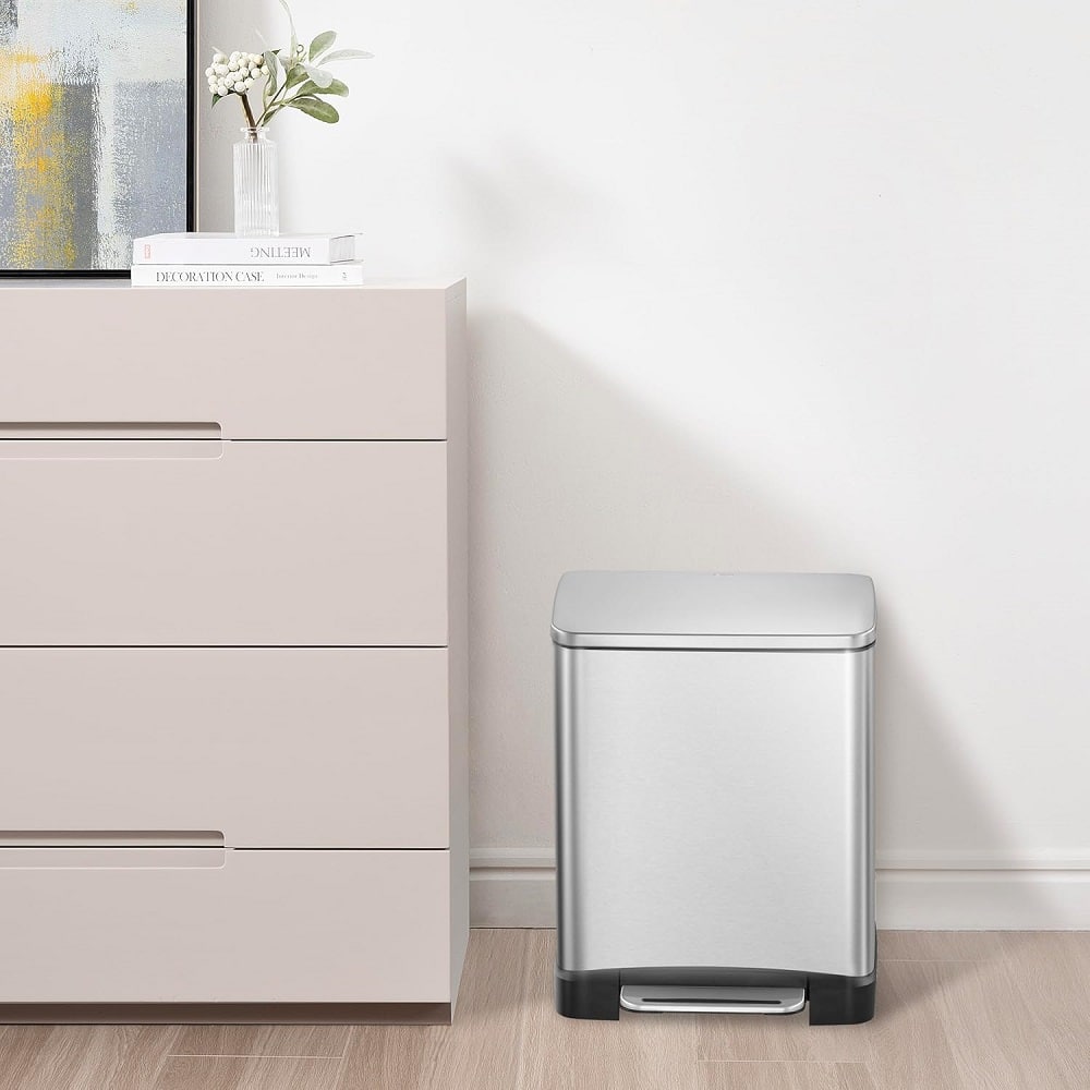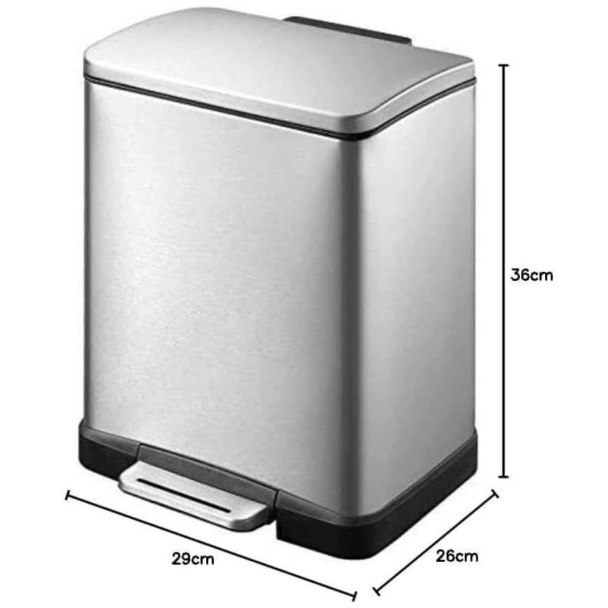 Cu un design elegant si compact, cosul de gunoi cu pedala E-Cube, de la EKO, se va potrivi perfect in casa ta, oferind o nota moderna. Pedala din otel inoxidabil face usoara deschiderea si inchiderea capacului. Aspectul elegant al acestui cos de gunoi este accentuat si de forma sa ergonomica.