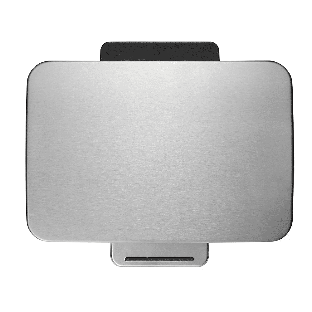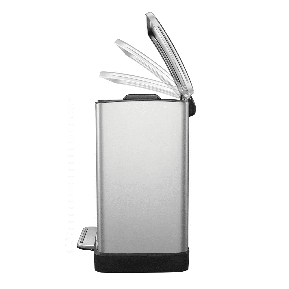 Cosul E-Cube este fabricat din materiale premium, avand o carcasa rezistenta din otel inoxidabil anti-amprente. Cosul are un design compact, care economiseste spatiul, si un recipient detasabil de 12 litri.