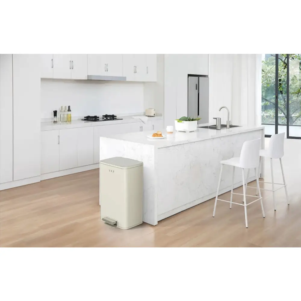 Cosul Marina este fabricat din materiale premium, avand o carcasa rezistenta din otel inoxidabil anti-amprente, curatenia acestuia fiind lipsita de dificultate. Cosul are un design compact, care economiseste spatiul, si un recipient detasabil de 50 litri, facandu-l perfect pentru diferite spatii, precum baia personala, biroul de la locul de munca sau chiar bucataria de acasa.