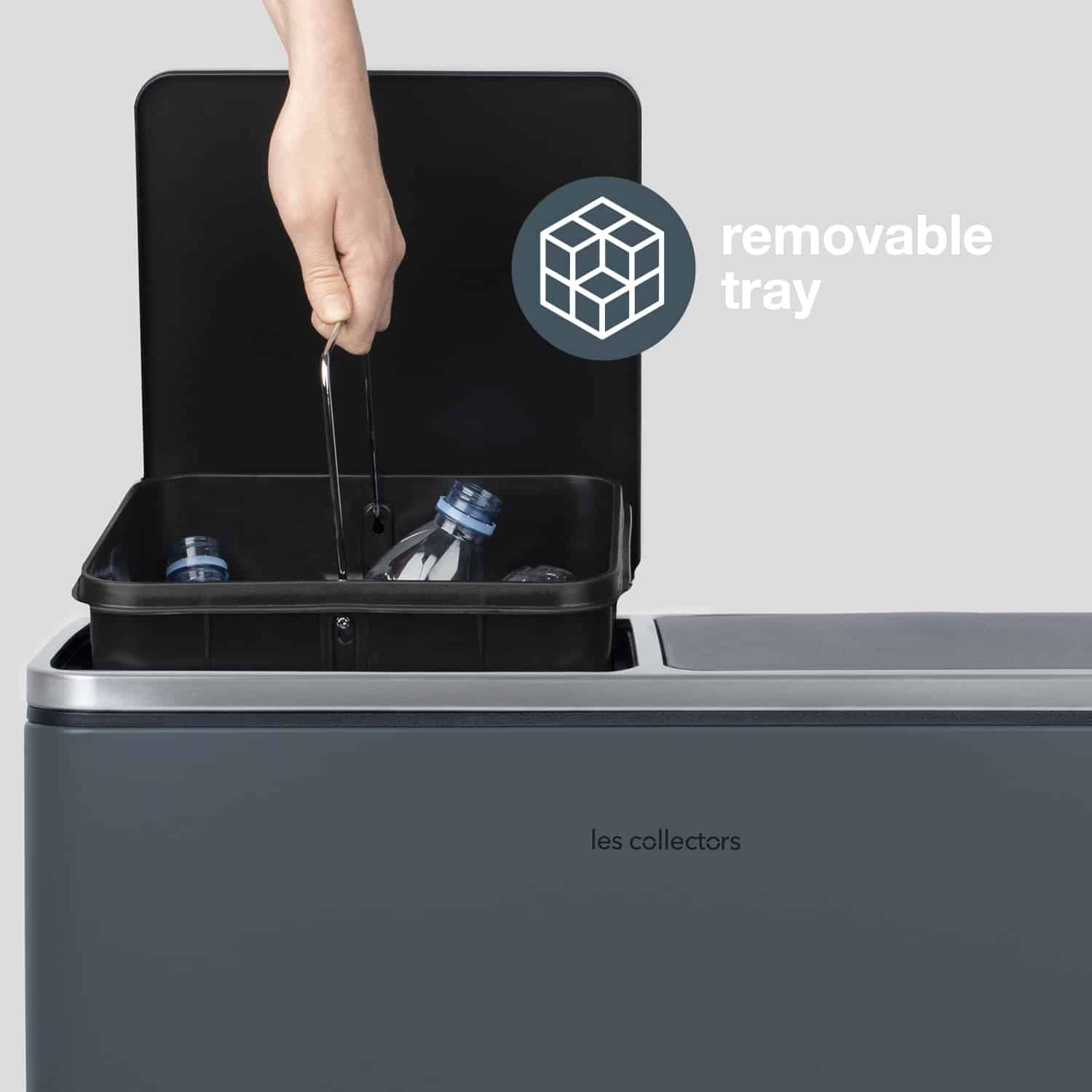 Cosul de gunoi dispune de 2 recipiente interioare detasabile si durabile, pentru a fi mai usor de curatat. Pentru a schimba sacul de gunoi cu usurinta, ridicati recipientul interior cativa centimetri, inclinati-l putin spre dumneavoastra si asezati sacul in interiorul recipientului.