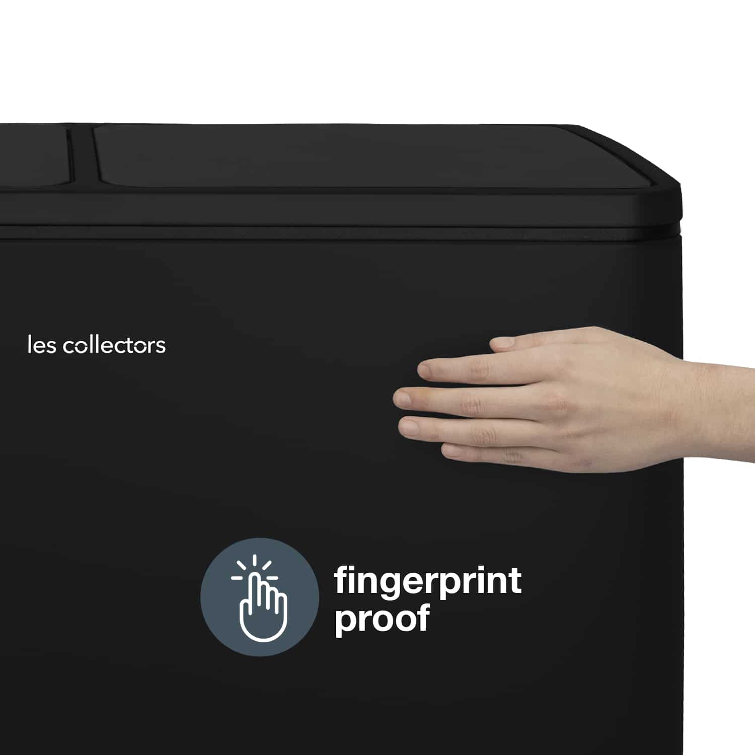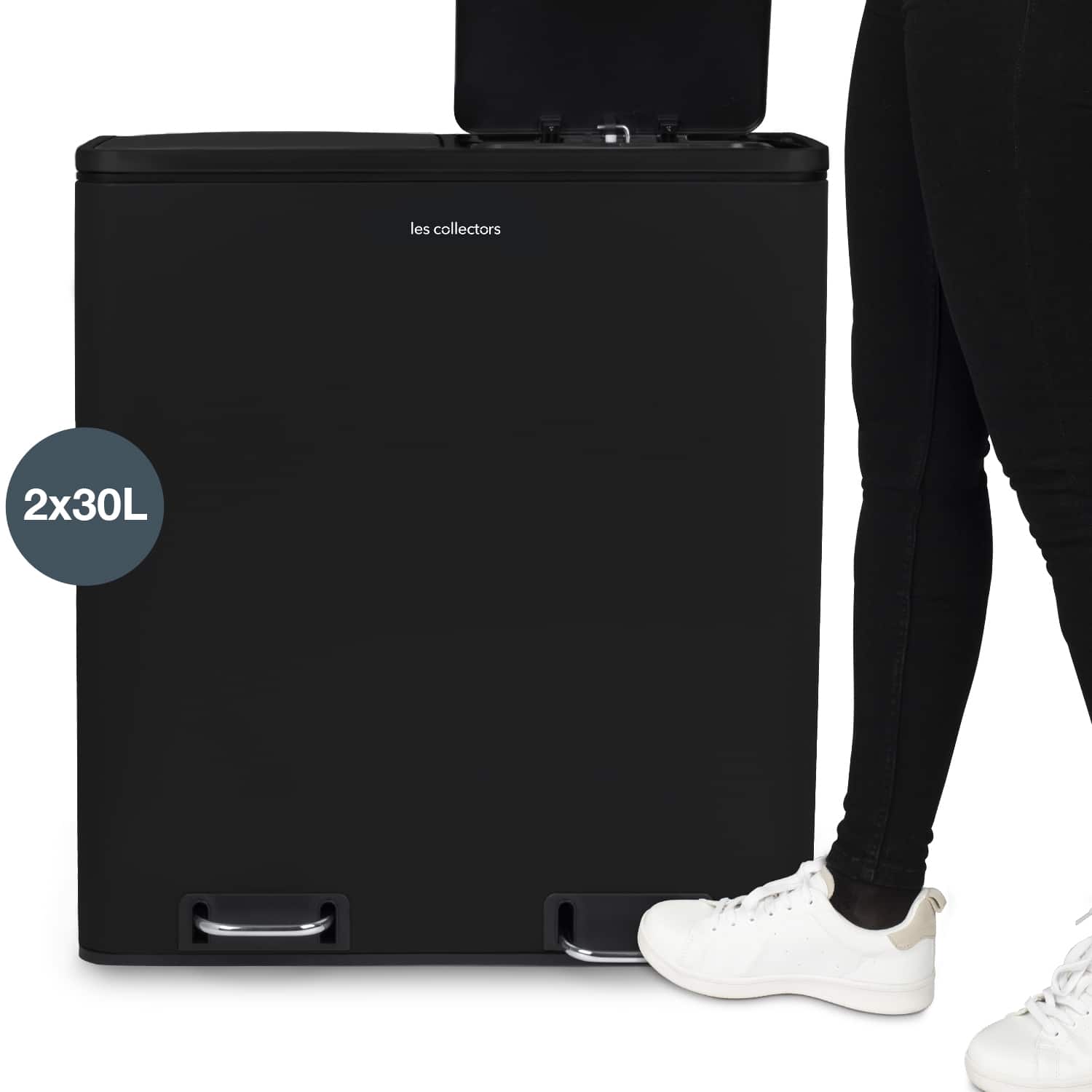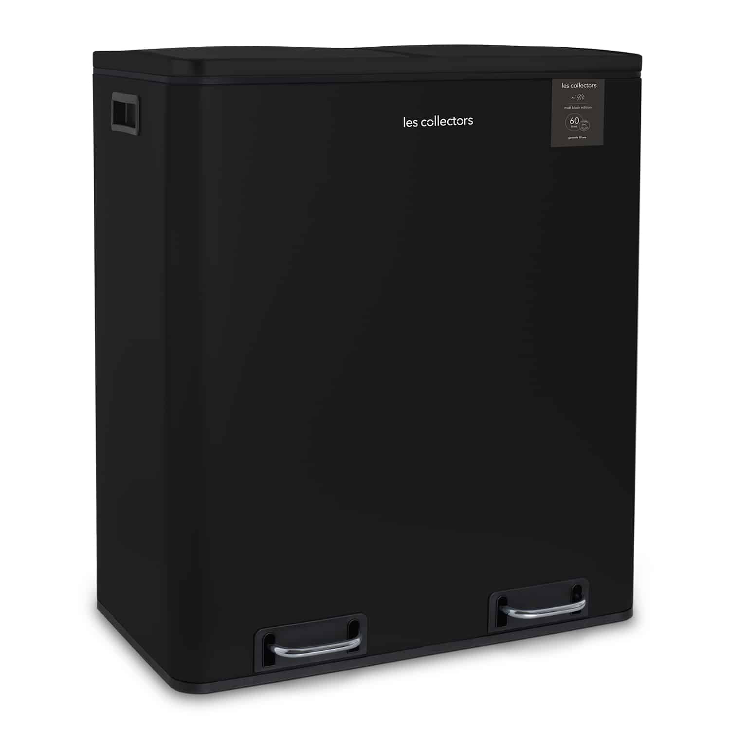 Fiecare compartiment are capacitatea de 30 litri, volumul total al cosului fiind de 60 litri. Exteriorul cosului de gunoi este fabricat din otel inoxidabil cu efect anti-amprenta.