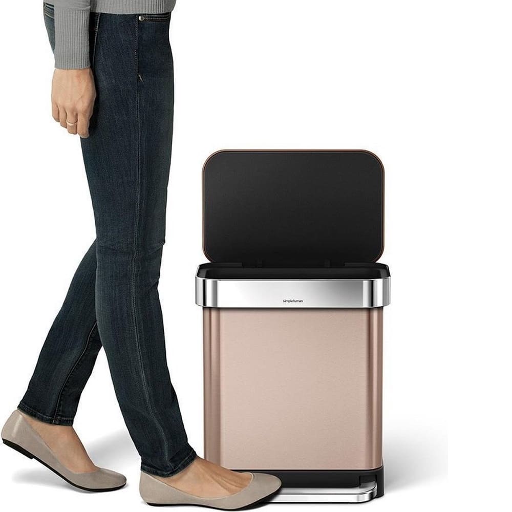 Cu un design elegant si compact, cosul de gunoi cu pedala de la Simplehuman se potriveste perfect in casa ta, oferind o nota moderna. Pedala din otel inoxidabil face usoara si igienica deschiderea si inchiderea capacului. Aspectul elegant al acestui cos de gunoi este accentuat de forma sa ergonomica.