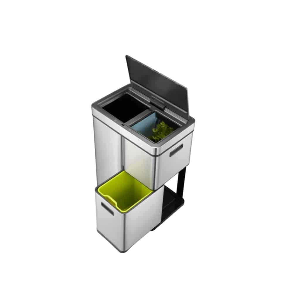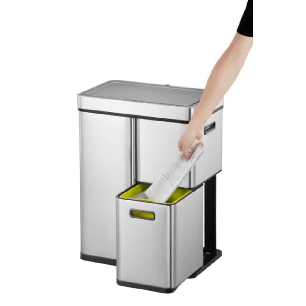 Cosul de gunoi are 3 compartimente detasabile cu o capacitate totala de 60 litri (30+15+15 litri) pentru ca dumneavoastra sa puteti recicla deseurile. Pentru ca punga sa nu se ruleze, cosurile vin dotate cu un suport de fixare.