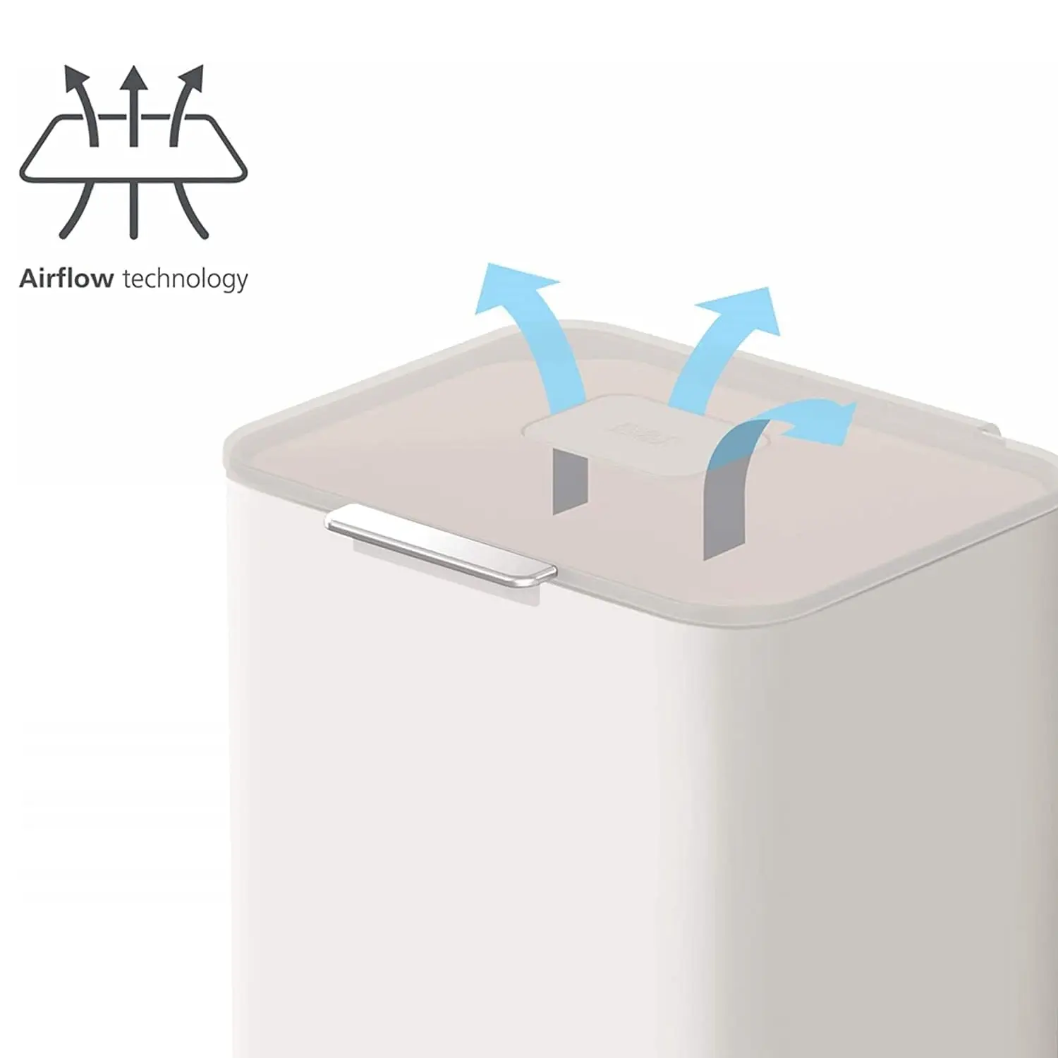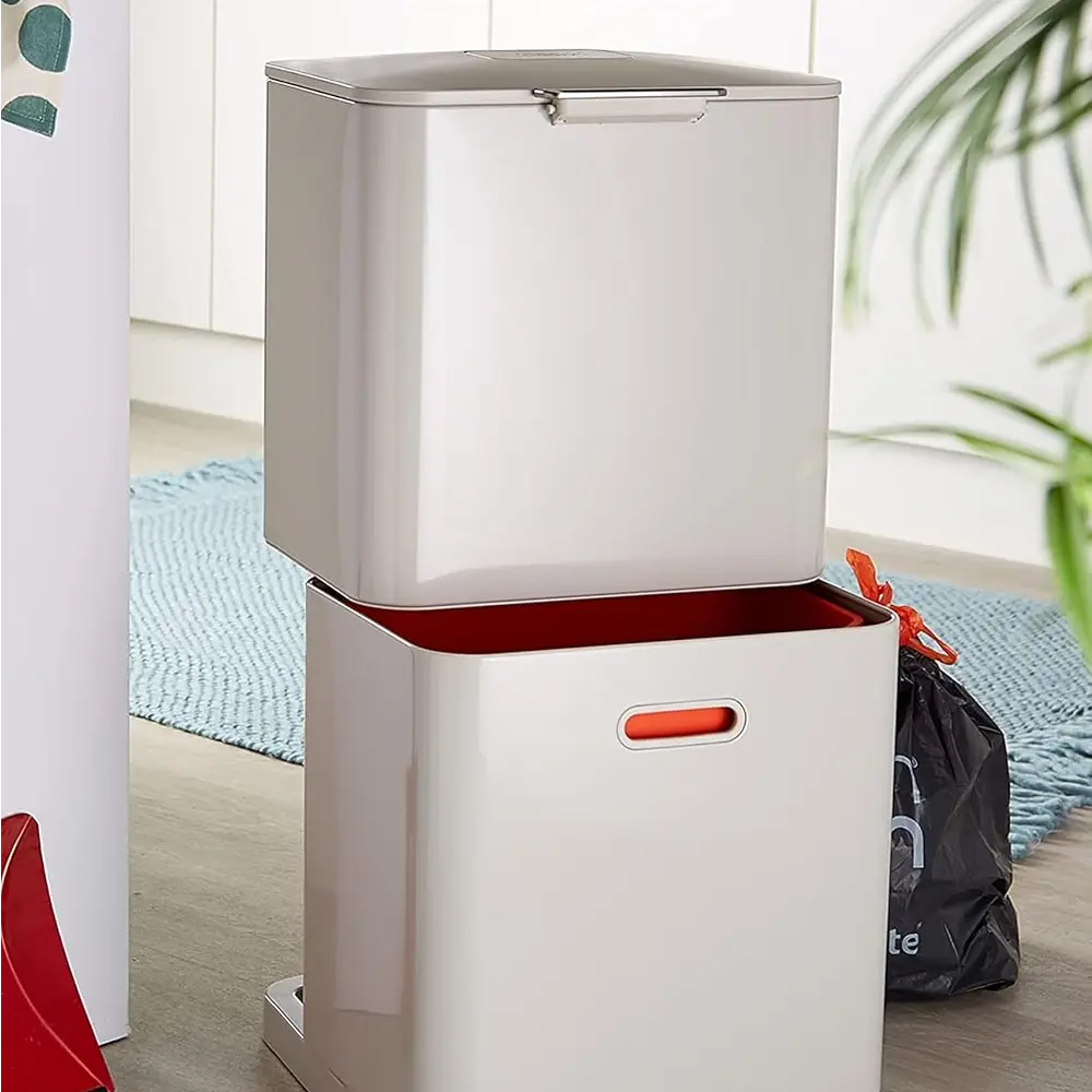 Compartimentele detasabile permit o inlocuire facila a sacilor de gunoi, iar filtrul de carbon activ elimina mirosurile neplacute pentru un aer mereu proaspat.