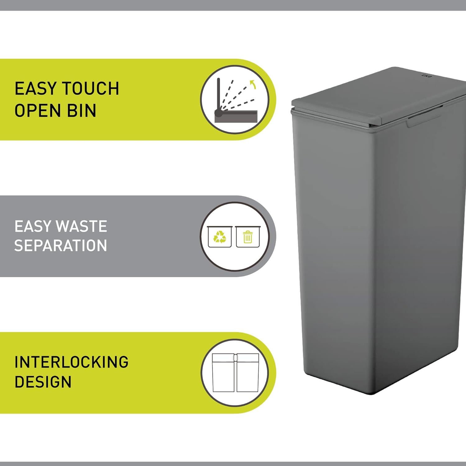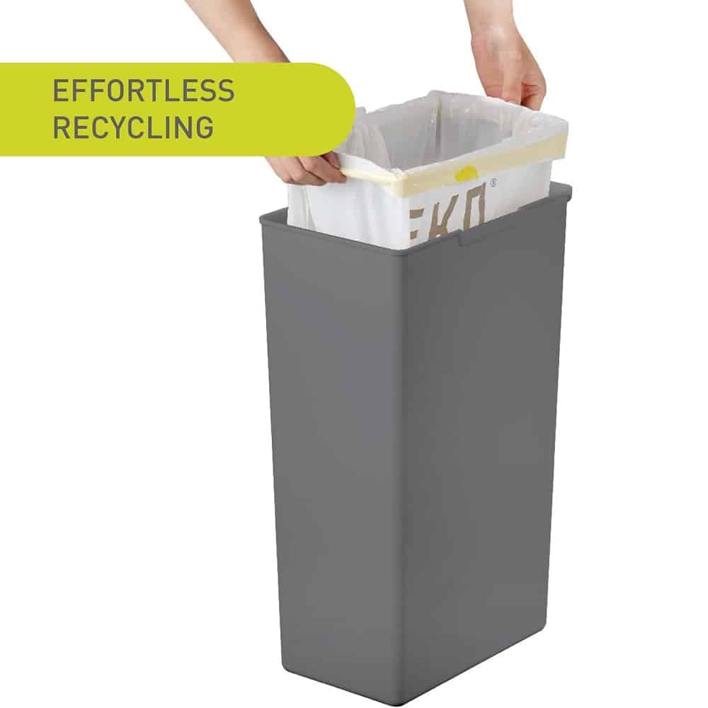 Ergonomic si usor de curatat, acest cos de gunoi modular de 40 litri poate fi atasat de alte cosuri pentru a putea sorta deseurile conform reglementarilor in vigoare. Capacul este detasabil si poate fi indepartat cu usurinta, pentru schimbarea sacului de gunoi si pentru o curatare mai usoara.