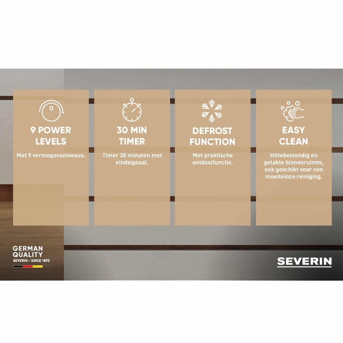 Cuptorul cu microunde, de la brandul german Severin, este un cuptor ideal pentru utilizarea zilnica, avand o capacitate de 17 litri, perfect pentru intreaga familie.