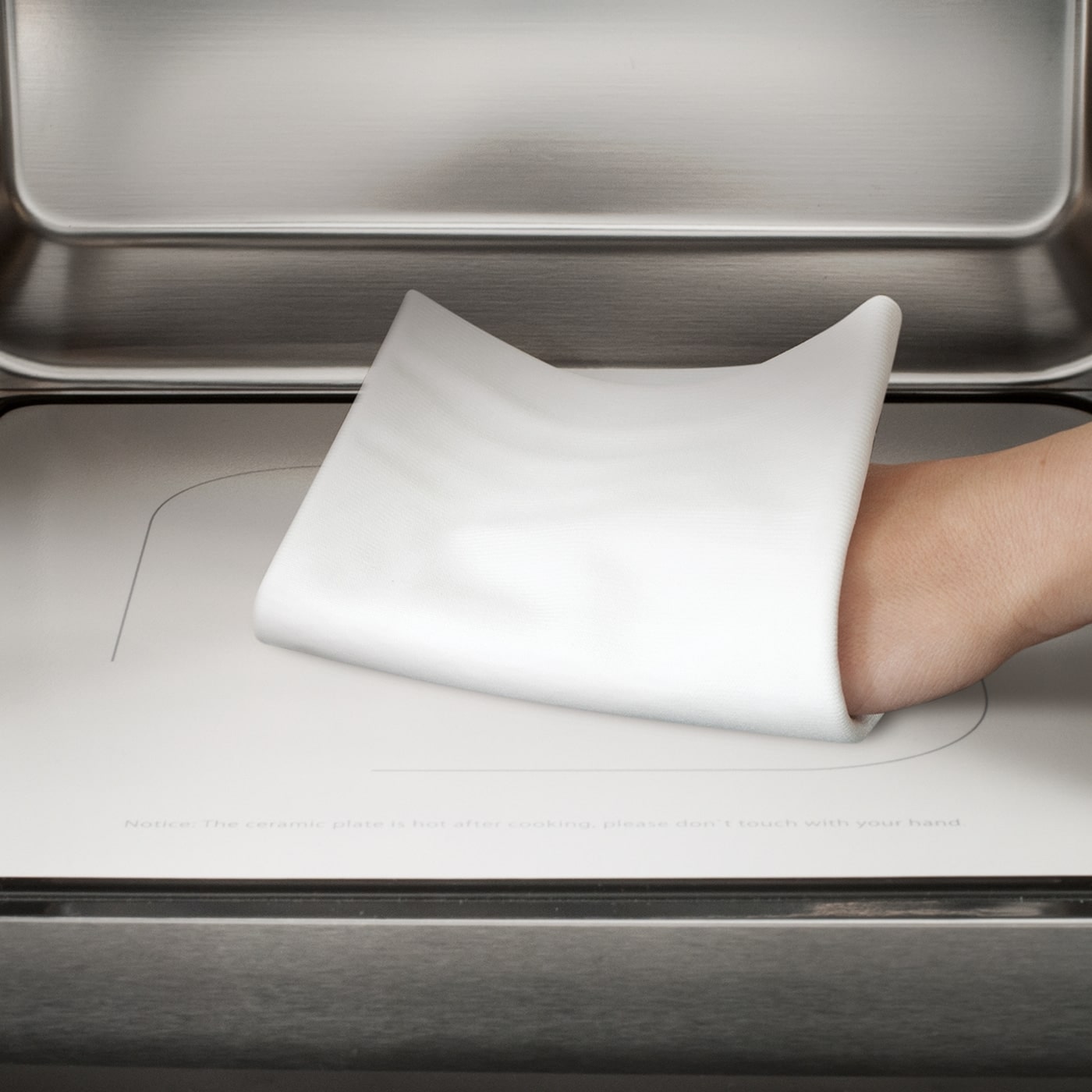 Inlocuirea platoului rotativ cu o baza ceramica face posibila prepararea alimentelor si in farfurii patrate, caserole si tavi dreptunghiulare ce ocupa intreaga lungime a interiorului cuptorului. Proiectata cu o tehnologie inovatoare, baza ceramica reflecta microundele, astfel incat acestea sunt distribuite uniform si mancarea este gatita perfect.