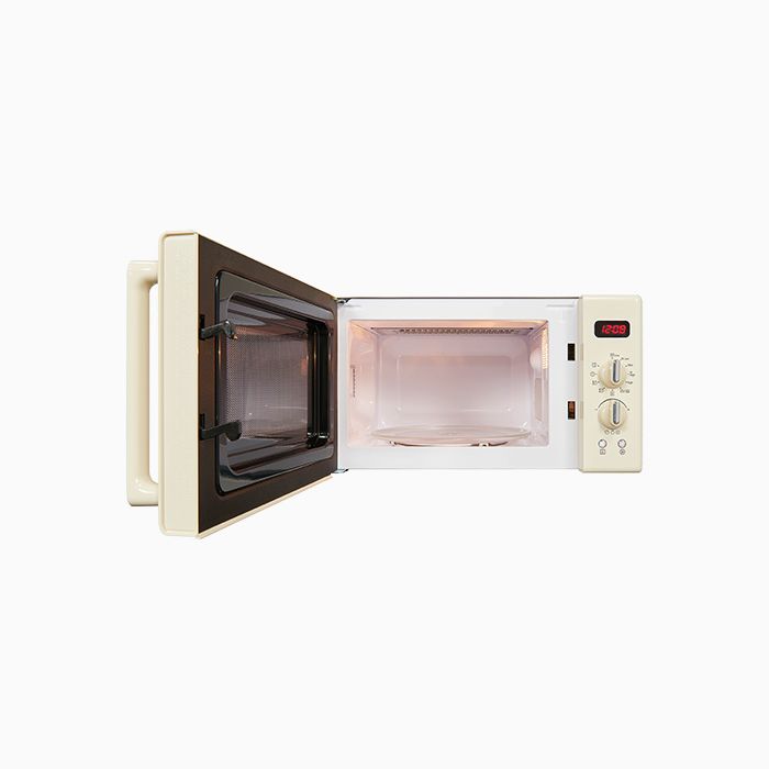 Cuptorul cu microunde 2in1 are un design retro, cu o usa din sticla si este echipat cu un timer de 90 minute. Cu o multitudine de programe pentru microunde, grill si dezghetare, posibilitatile sunt numeroase, iar semnalul sonor te va anunta atunci cand programul selectat s-a incheiat.