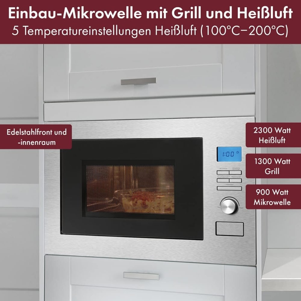 Functia cu microunde – puteti alege intre cinci niveluri de putere atunci cand va incalziti mancarea. Cu o putere de 900 de wati, le puteti incalzi uniform si eficient intr-un timp scurt. Cu ajutorul a opt programe automate, Bomann permite prepararea fara stres. In plus, functiile gratar sau cu aer cald si cuptor cu microunde pot fi, de asemenea, combinate, astfel incat sa aveti garantate rezultatele ideale.