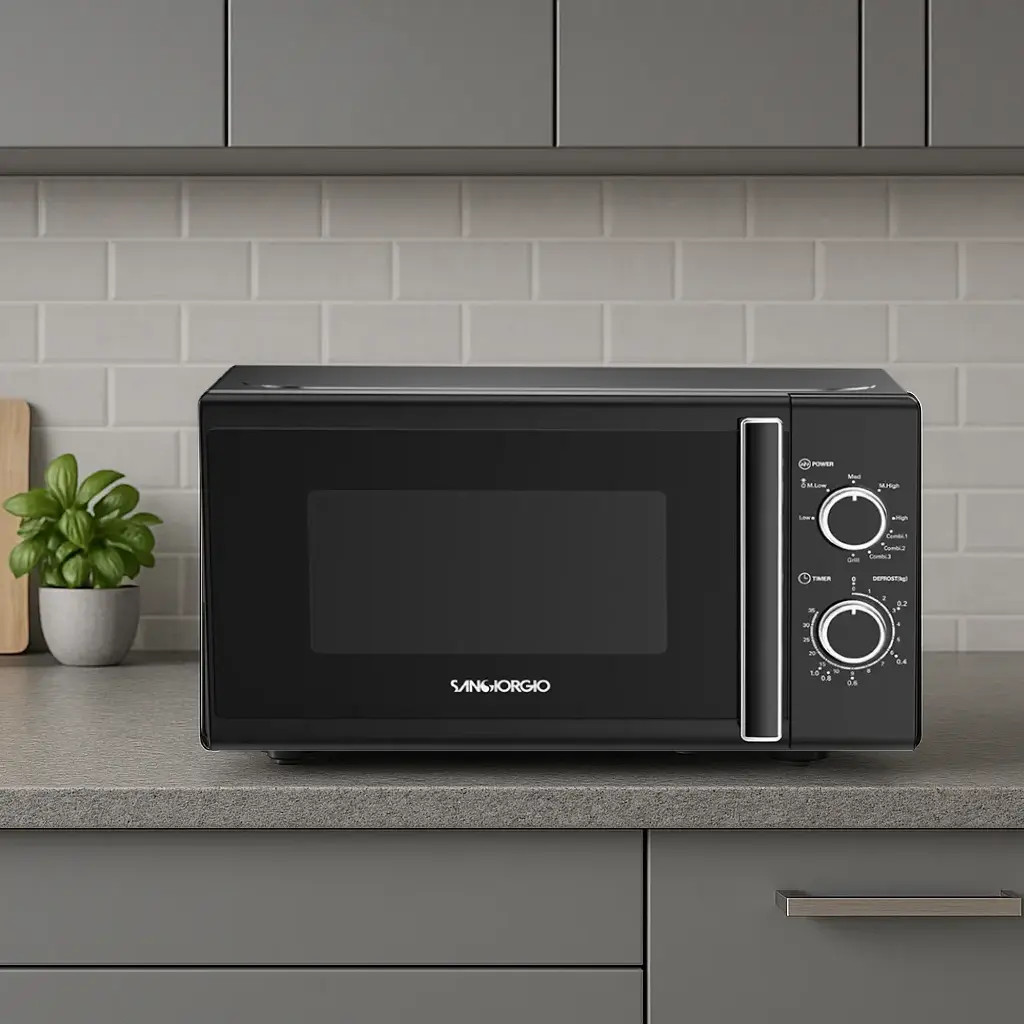 Cuptorul cu microunde, de la brandul italian SanGiorgio, este un cuptor ideal pentru utilizarea zilnica, avand o capacitate de 20 litri, perfect pentru intreaga familie.