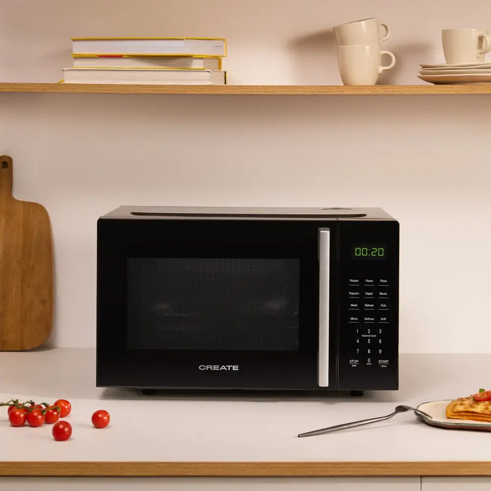 Mai mult, pentru a te bucura din plin de cuptorul cu microunde de la CREATE, acesta dispune de 8 programe automate pentru cartofi, paste, pizza, popcorn, legume, carne, peste si bauturi calde.