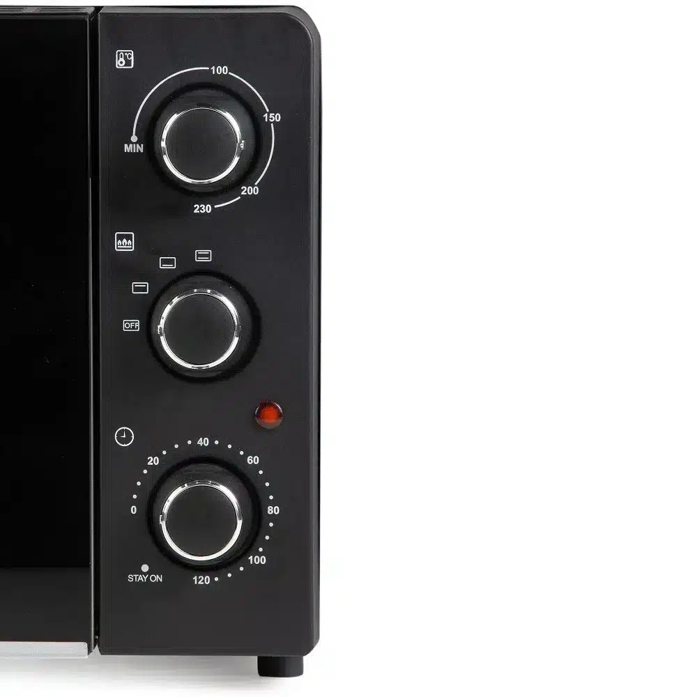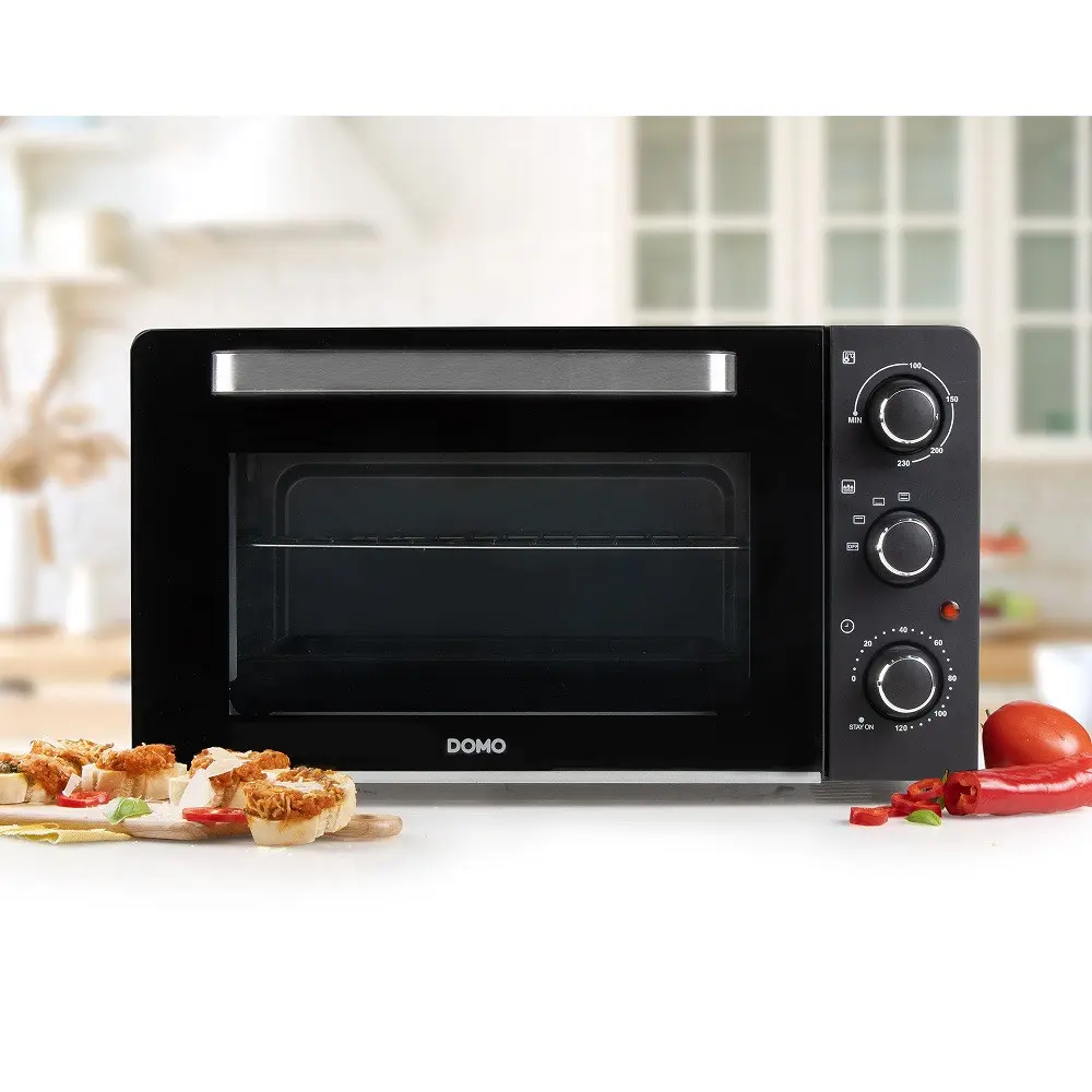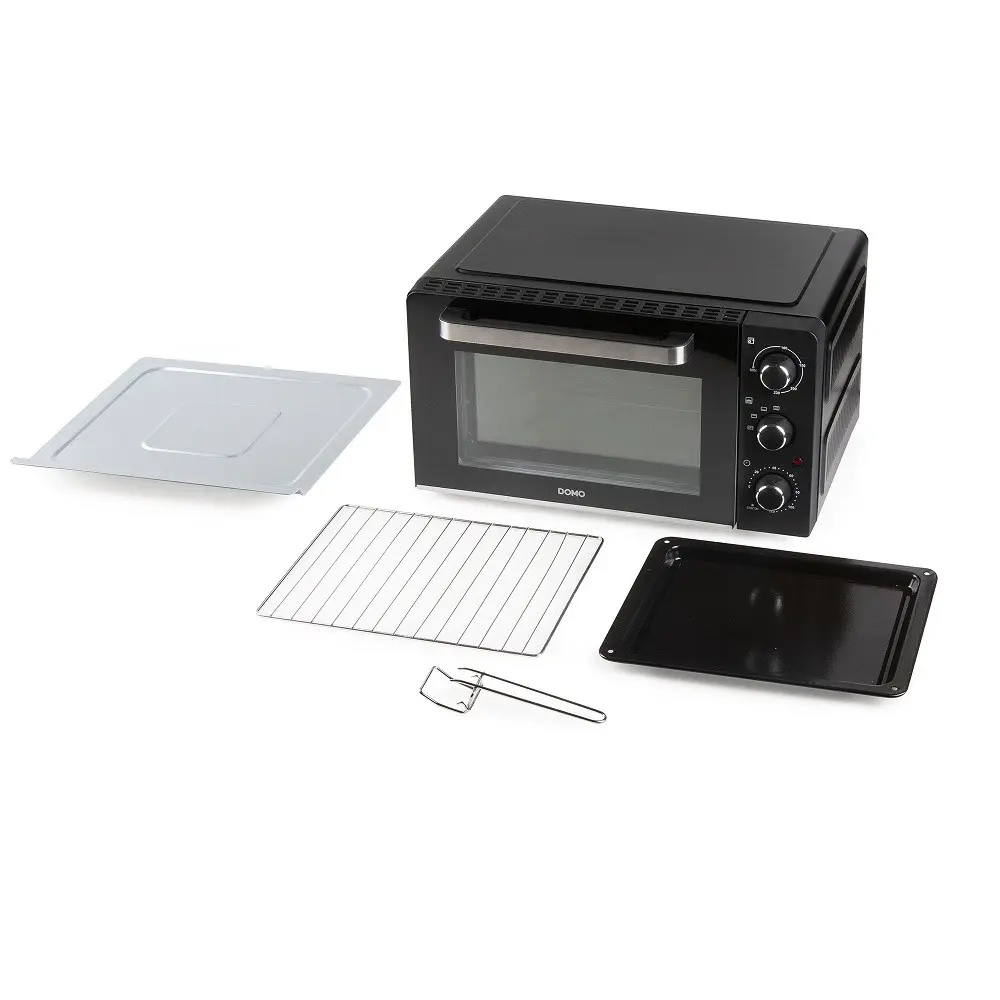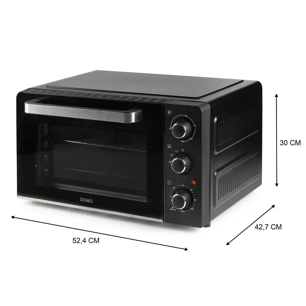 Cu ajutorul cuptorului de la DOMO economisesti cu usurinta energie, preparand alimente rapid si sigur, fara a fi nevoit sa incalzesti cuptorul traditional. Timerul de 120 de minute si controlul rezistentei asigura rezultate optime de coacere. Inclus in pachet vei gasi o tava antiaderenta, tava pentru firimituri si cleste pentru scoaterea tavii.