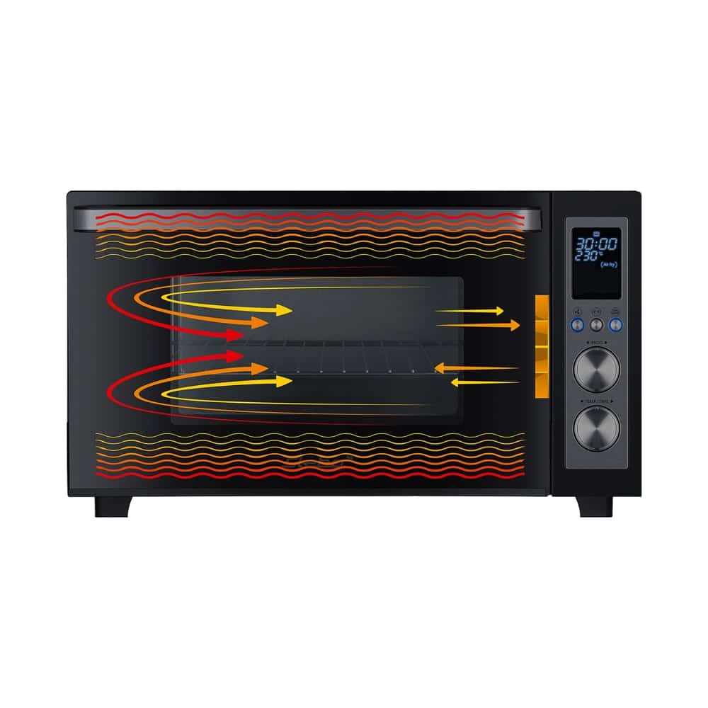 Acesta are functia de convectie, fiind dotat cu un ventilator si un sistem de evacuare, care sufla aerul fierbinte peste si in jurul alimentelor si apoi il evacueaza din cuptor. Acest lucru are ca rezultat distributia uniforma a aerului fierbinte in jurul alimentelor pentru a le ajuta sa se gateasca in mod uniform, si intr-un timp mai scurt. Incalzirea in cuptor se face atat de sus cat, si de jos, asigurand ca preparatele dumneavoastra vor fi gatite in totalitate.