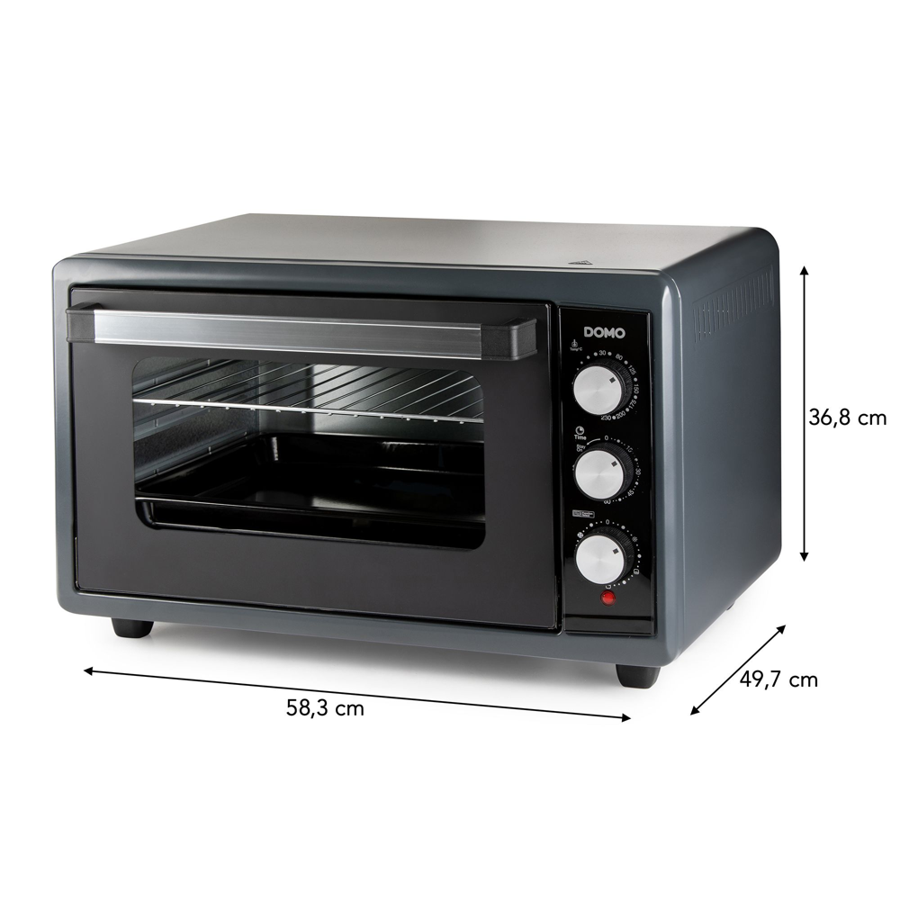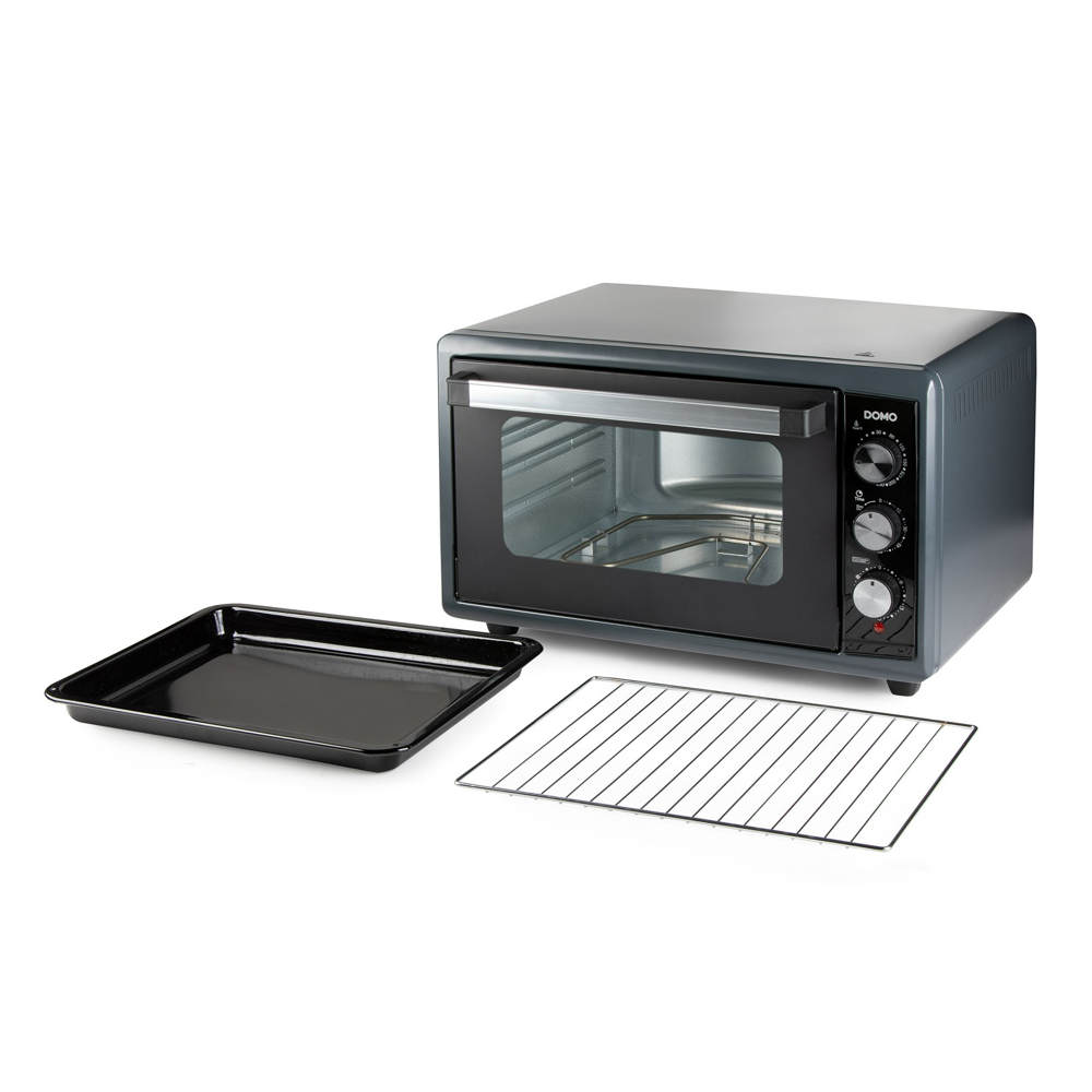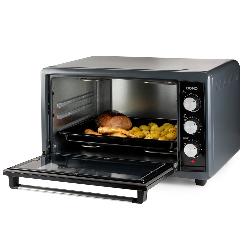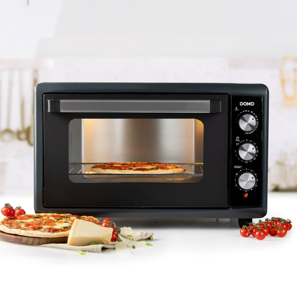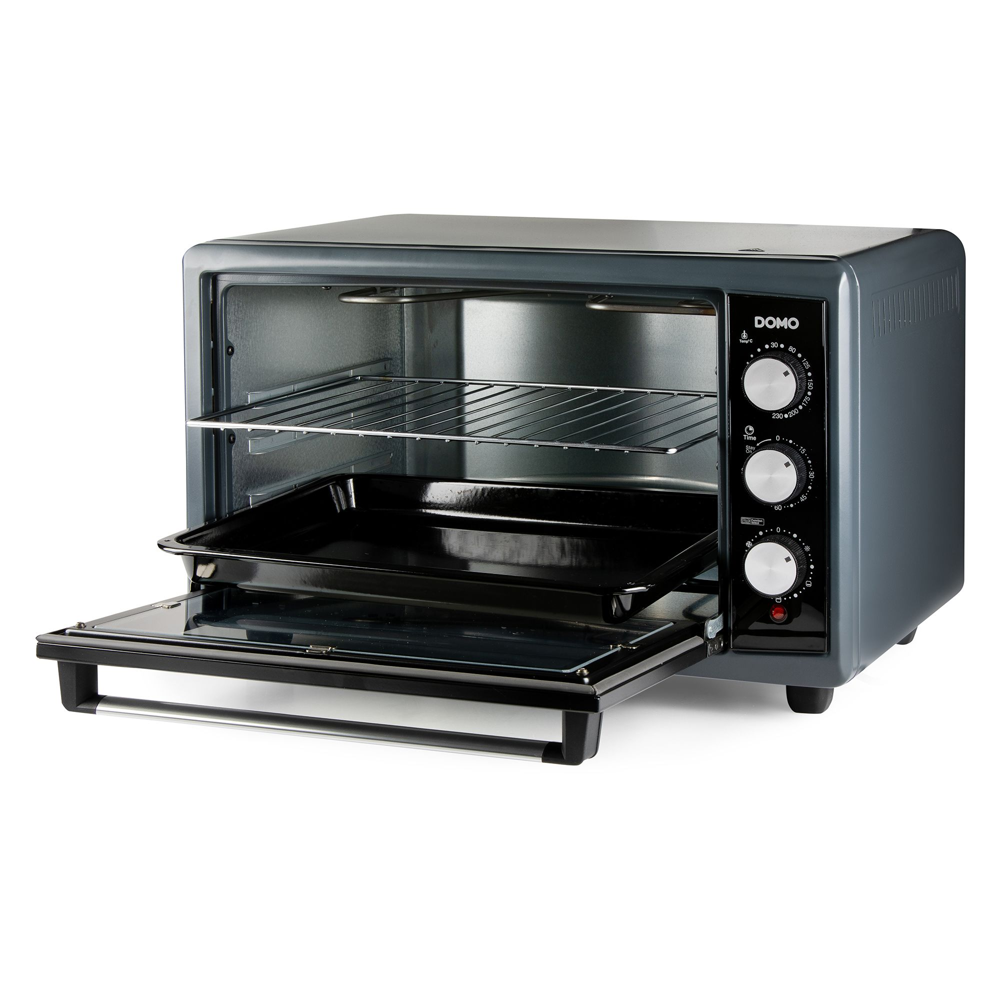 Cu ajutorul cuptorului de la DOMO economisesti cu usurinta energie, preparand alimente rapid si sigur, fara a fi nevoit sa il preincalzesti. Timerul de 90 de minute si controlul rezistentei asigura rezultate optime de coacere. Cuptorul este echipat cu un gratar metalic pentru coacere si rumenire perfecta, precum si o tava de copt practica, ideala pentru deserturi, legume sau pui la cuptor.