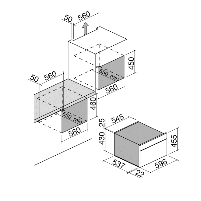 Dimensiuni de incorporare (l x H x A): 56 x 45 x 55 cm