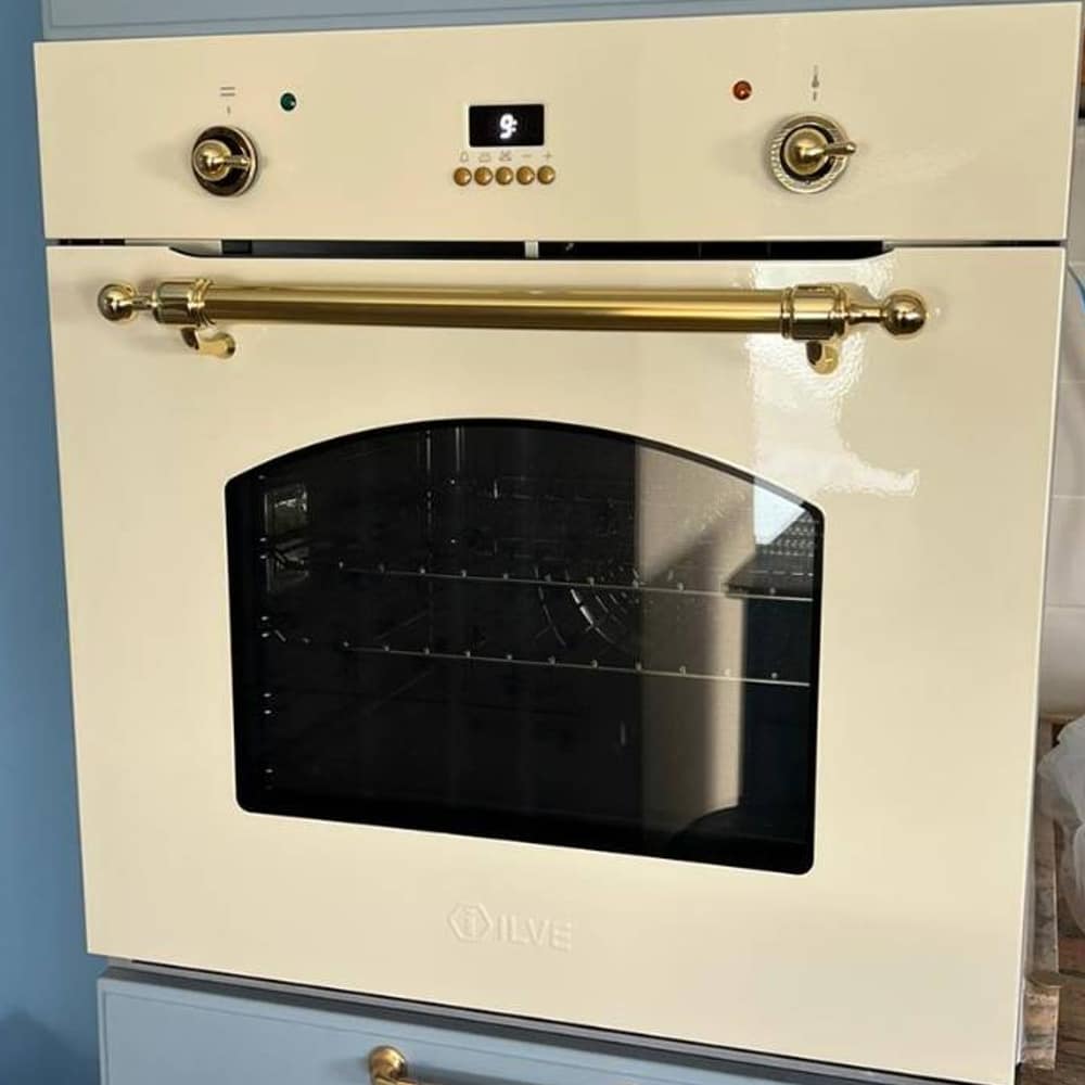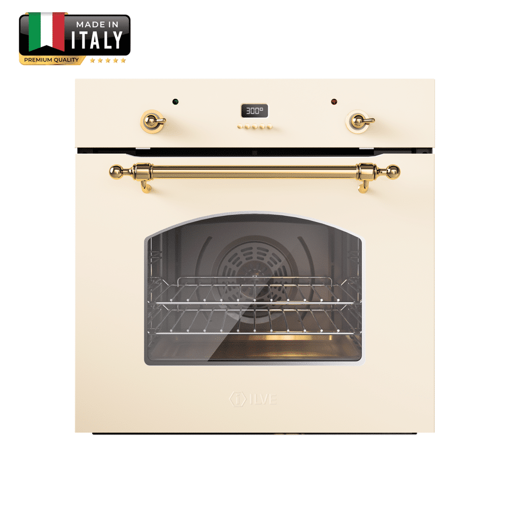 Realizat cu dorinta de a aminti de designul bucatariilor vintage, cuptorul incorporabil de la ILVE integreaza cele mai avansate tehnologii. Designul elegant si clasic este evidentiat prin finisajul crem si accentele aurii, care adauga o nota de rafinament si eleganta in bucataria dumneavoastra.