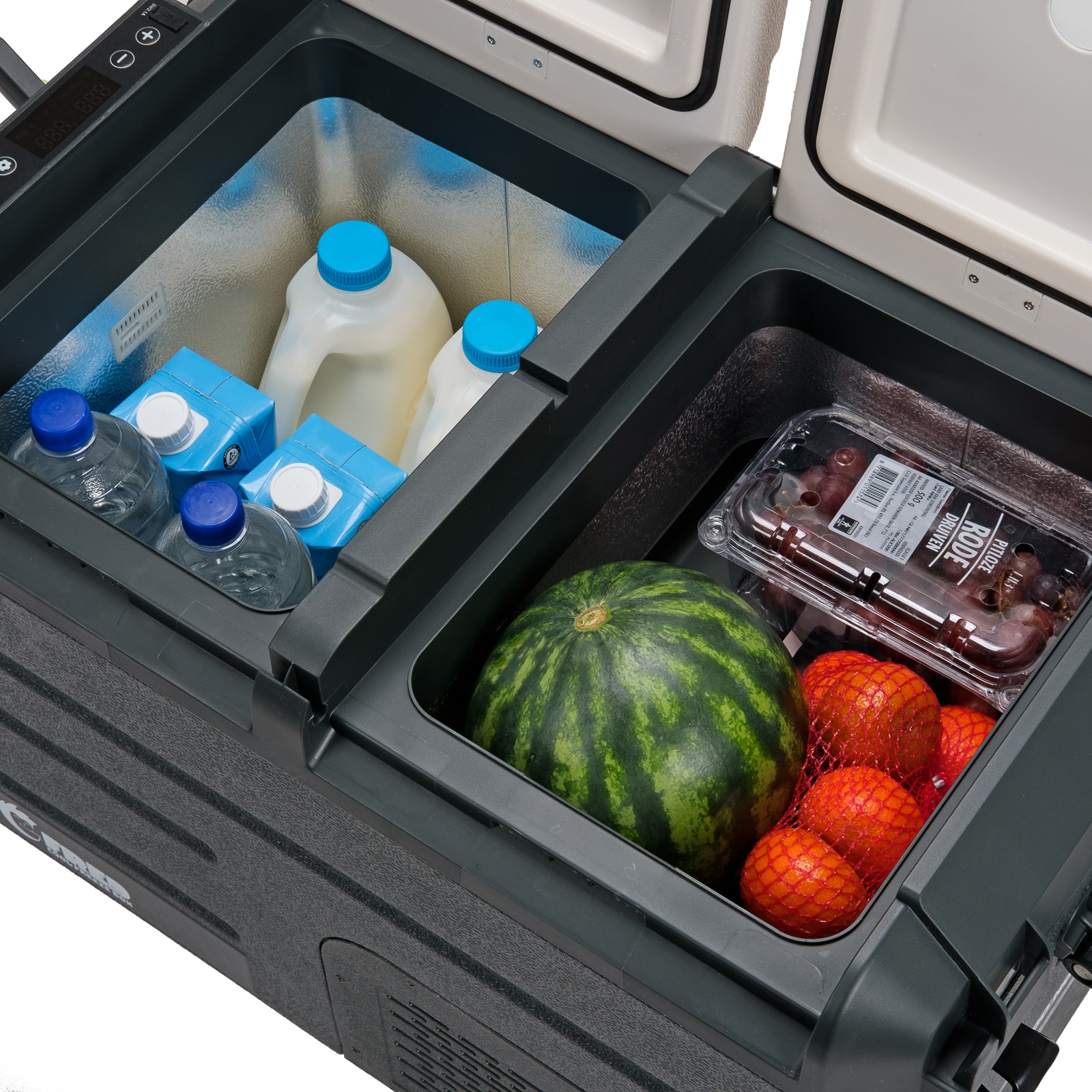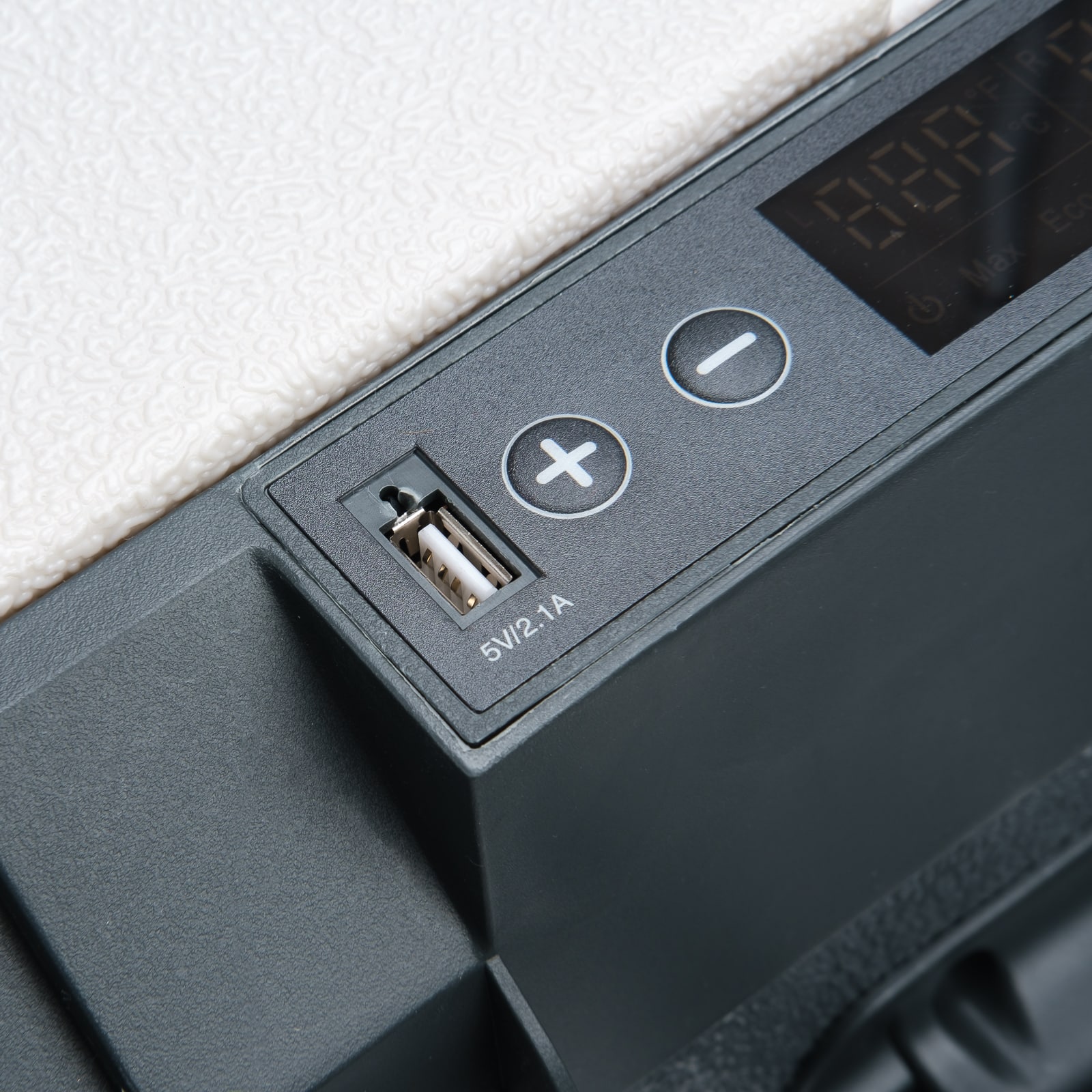 Cutia frigorifica electrica are cateva caracteristici suplimentare pentru a-ti face aventura in aer liber si mai confortabila, avand iluminare interna automata, astfel incat sa poti vedea ce scoti din lada chiar si atunci cand este intuneric. Display-ul are si un port USB pentru incarcarea telefonului sau a altor dispozitive, iar capacul are 4 suporturi integrate in care poti pune doza sau un pahar de bautura fara ca acestea sa cada. Mai mult, acesta are si un desfacator pentru sticle.