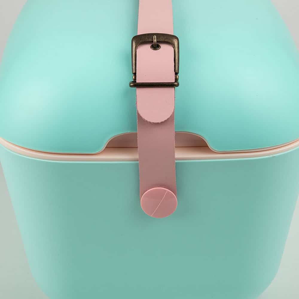 Polarbox Pop vine impreuna cu o curea din piele asortata cu literele, care poate fi ajustata pentru a transporta in confort si siguranta produsele.