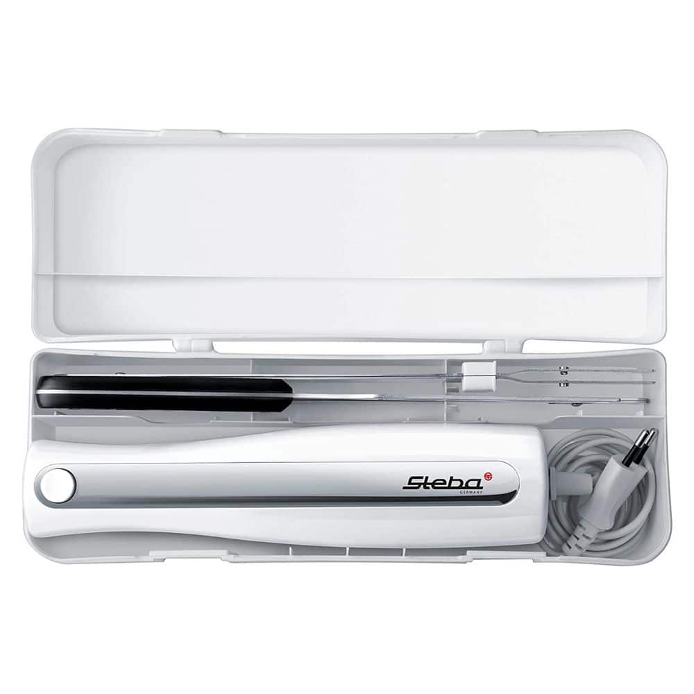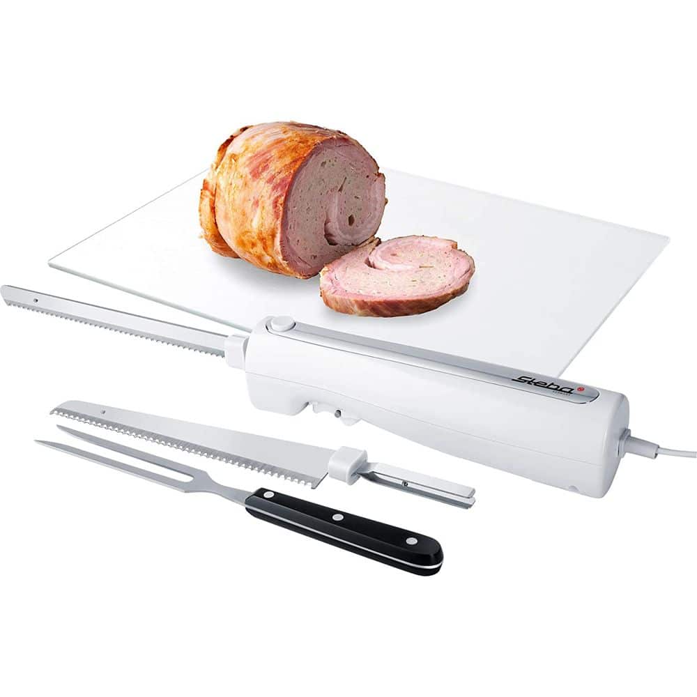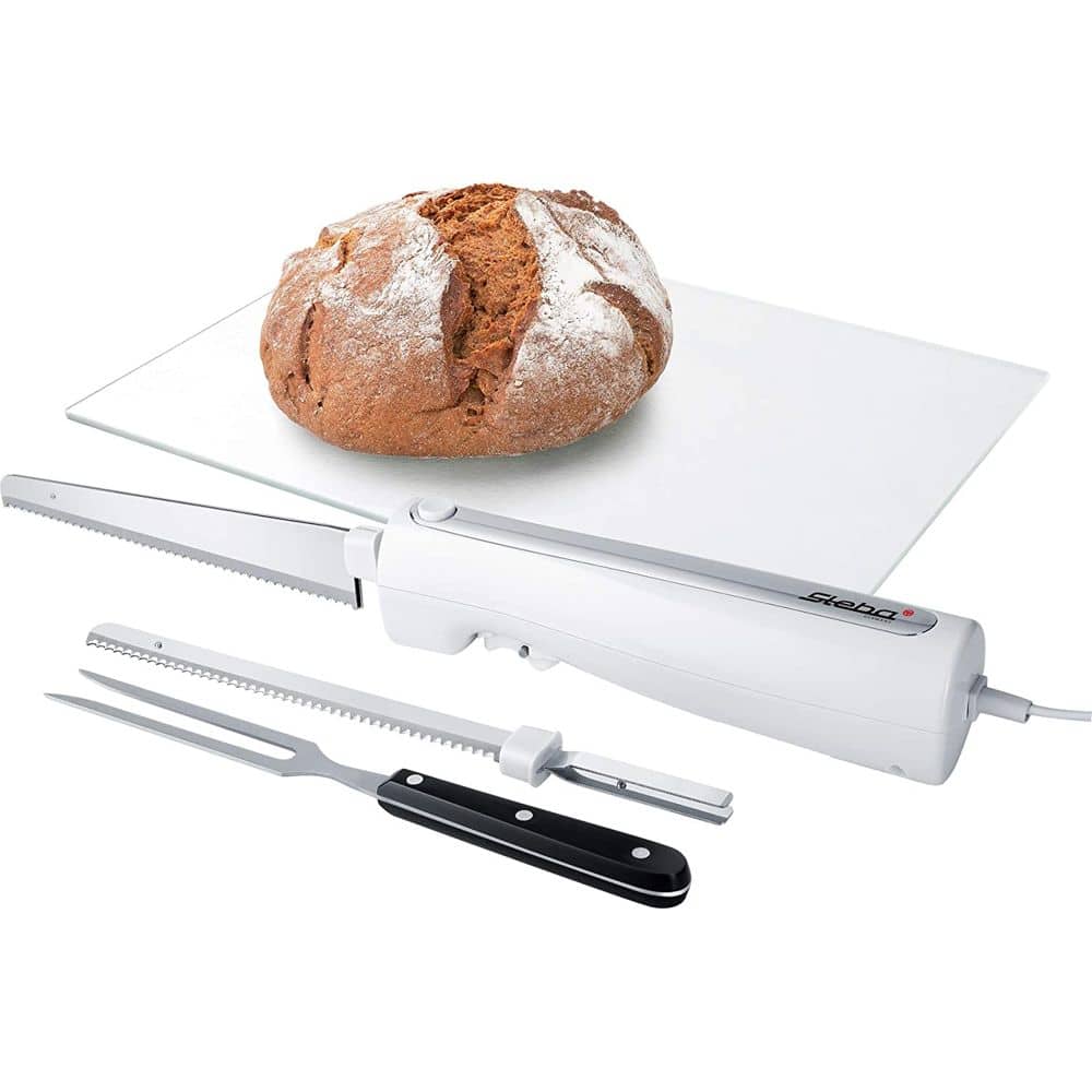 Cutitul electric de bucatarie de la Steba cu 2 tipuri de lame, este ideal pentru taierea usoara a alimentelor, in special a bucatilor mari de carne care nu pot fi taiate cu usurinta cu un cutit obisnuit fiind dotat cu o lama cu care puteti taia si painea.