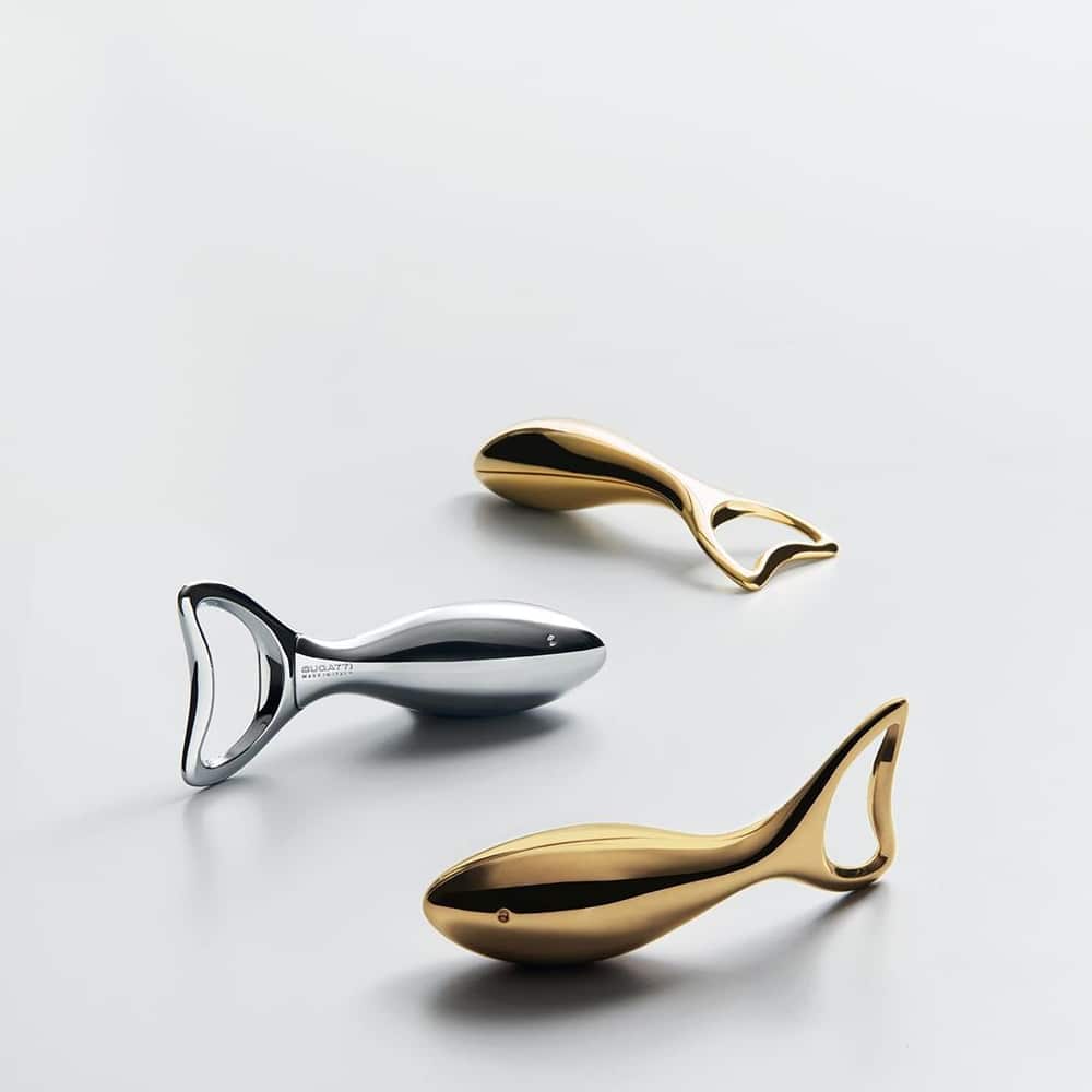 Conceput de Alessio Romano, desfacatorul este inspirat din formele pestisorilor aurii, ca simbol al norocului si loialitatii in casnicie, avand numeroase semnificatii in diferite culturi ale lumii, de la Feng Shui la cele japoneze. La Casa Bugatti lumea este prezentata sub diverse forme ce combina aspectele practice ale vietii moderne cu elemente din natura. Modul in care omul percepe masa si bucataria sunt schimbate, iar calitatea, frumusetea si stilul elegant italian primeaza.