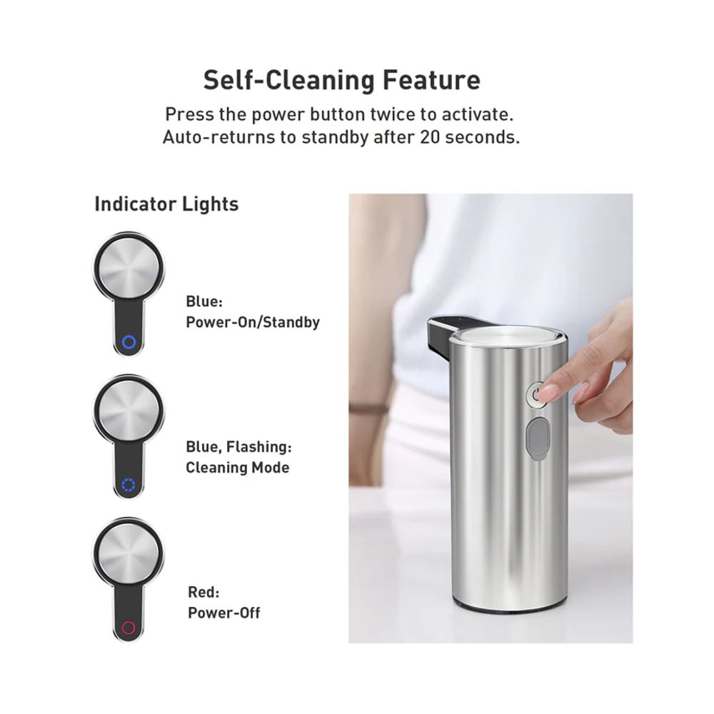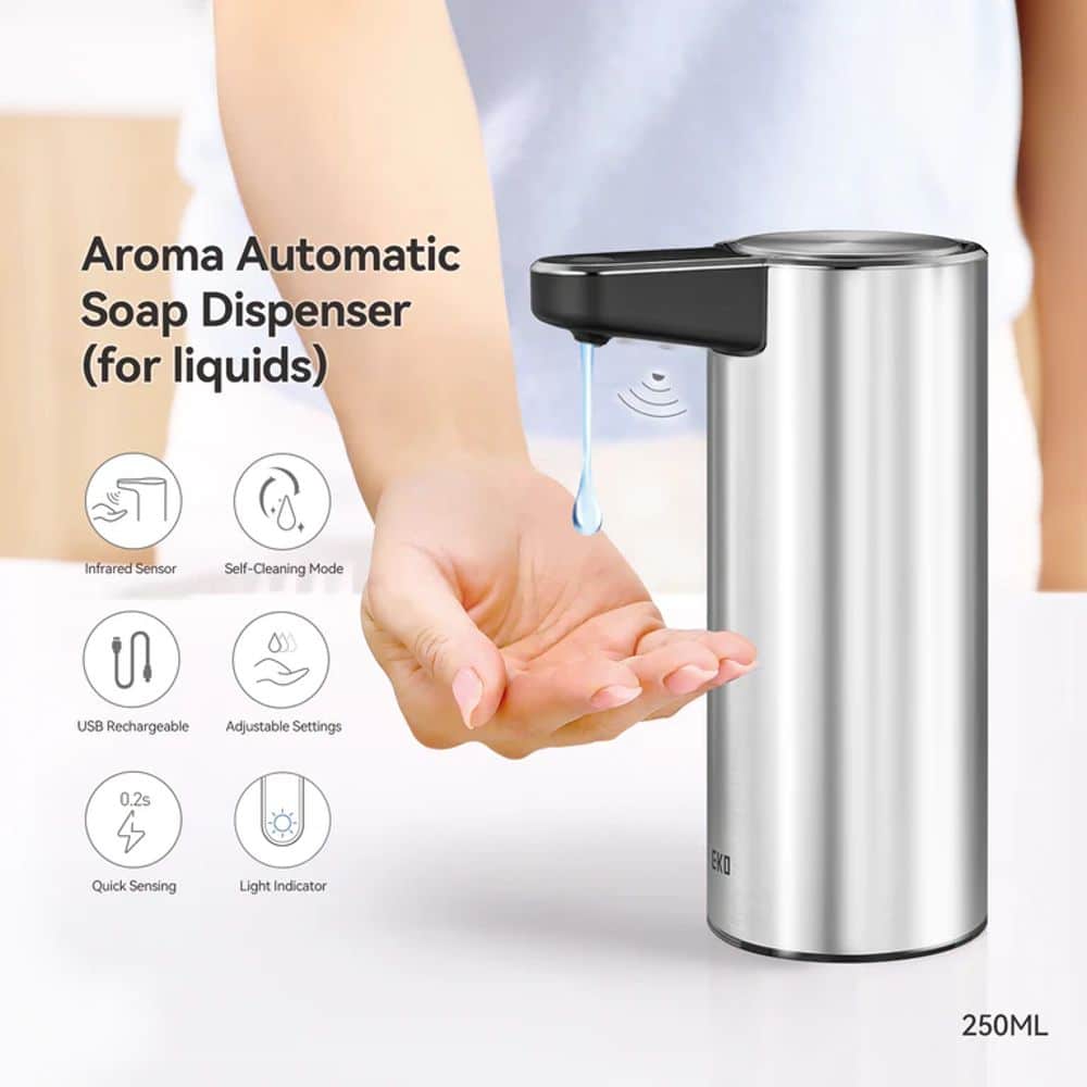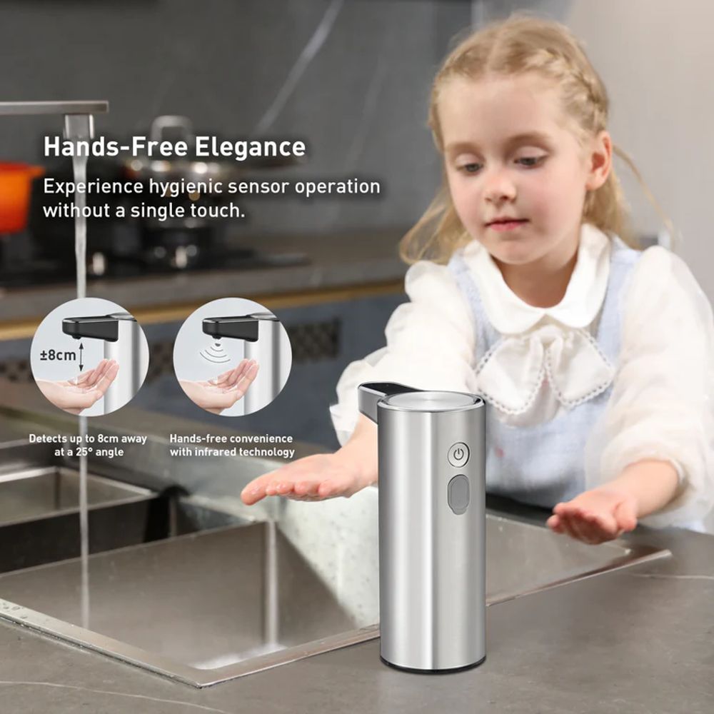 Dispenserul cu senzor este un dispozitiv inovator si sustenabil, potrivit pentru dozarea sapunului lichid sau al detergentului, avand o capacitate de 250 ml, suficienta pentru a stoca o cantitate generoasa de produs de curatare.