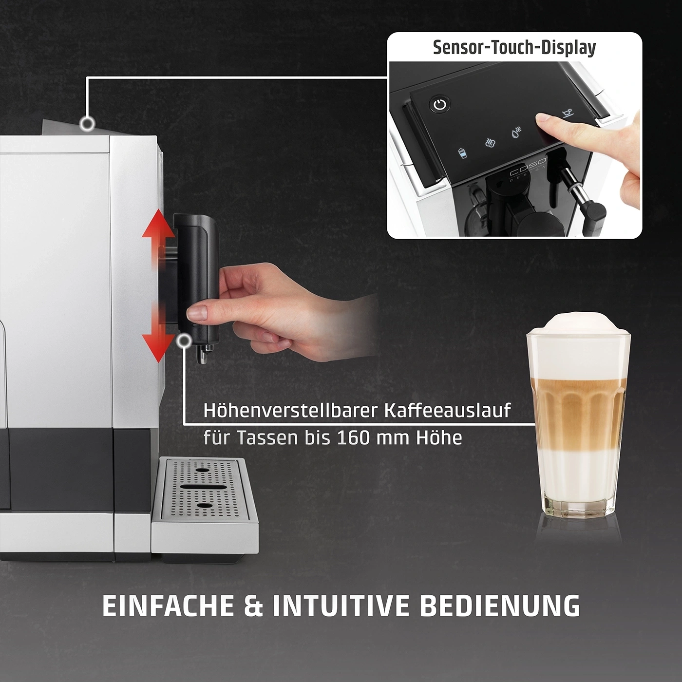 Printre caracteristicile interesante ale acestui espressor premium se numara ajustarea duzei pe inaltime – in functie de paharul folosit – si iluminarea cestii.