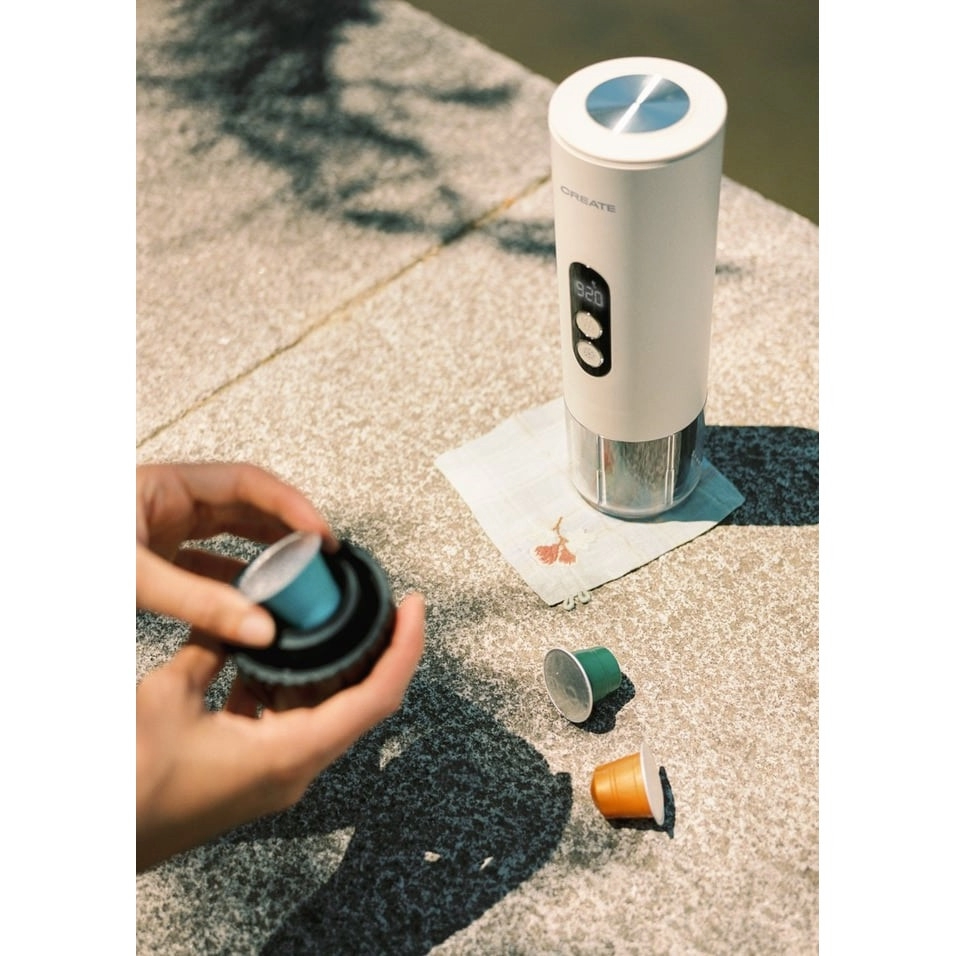 Espressorul portabil, de la brandul spaniol CREATE, este tot ce ai nevoie atunci cand pleci intr-o calatorie!