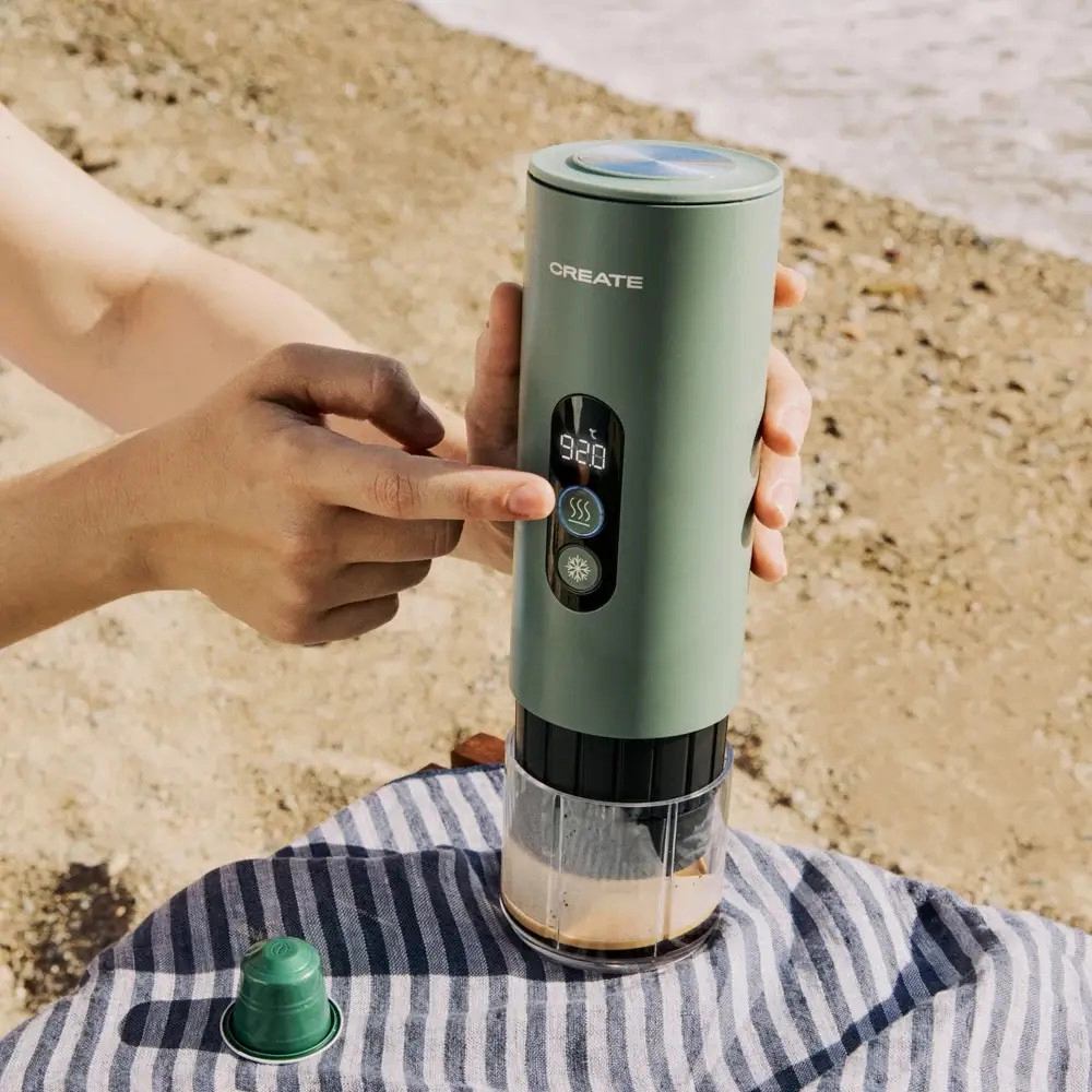 Espressorul portabil, de la brandul spaniol CREATE, este tot ce ai nevoie atunci cand pleci intr-o calatorie!