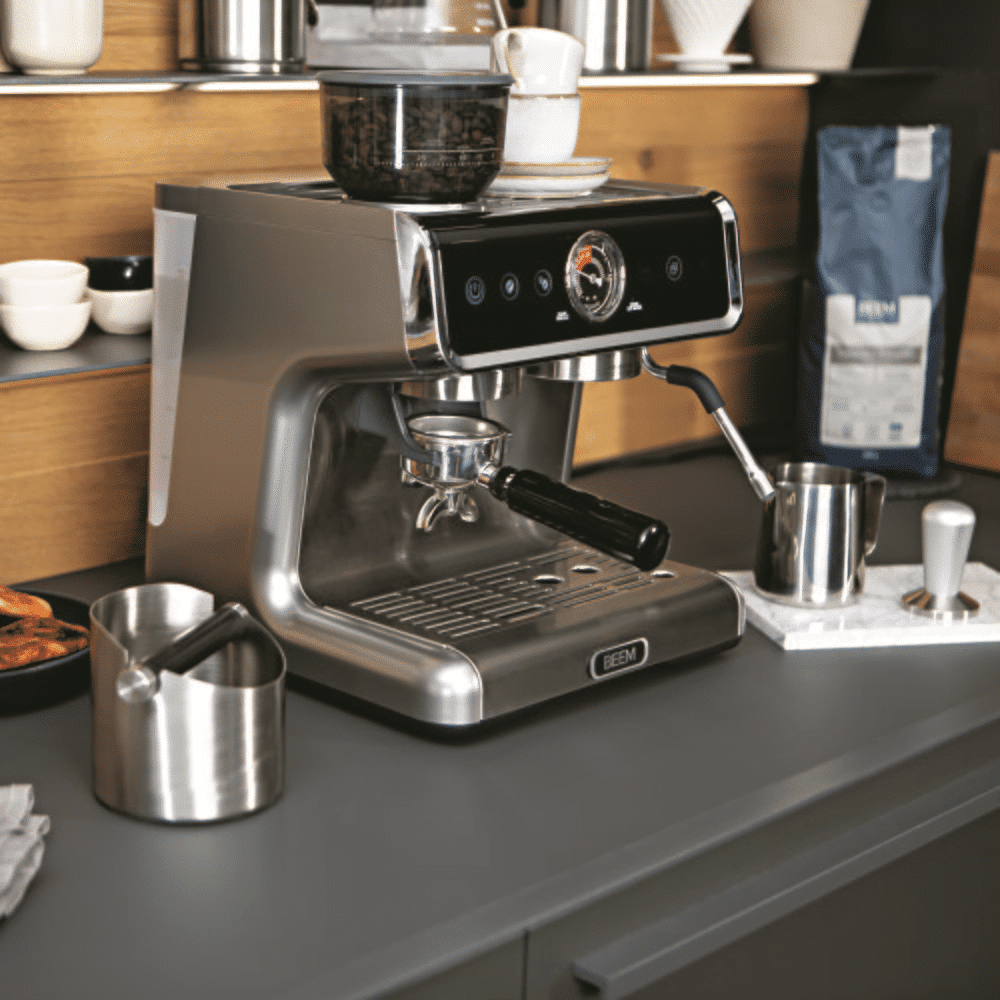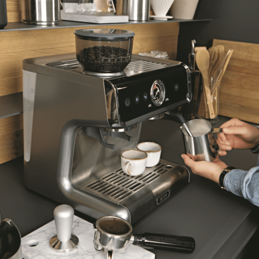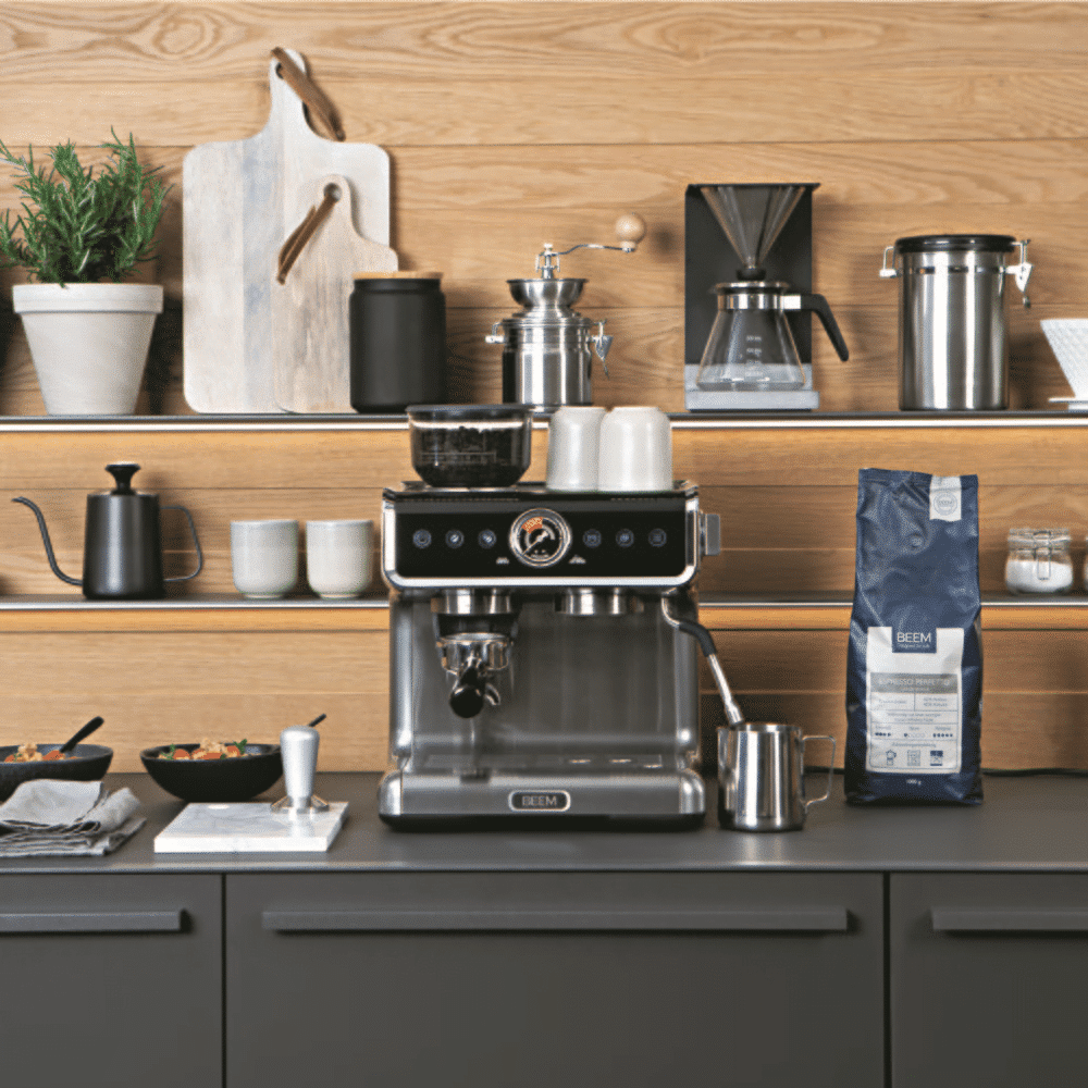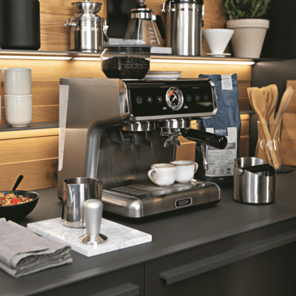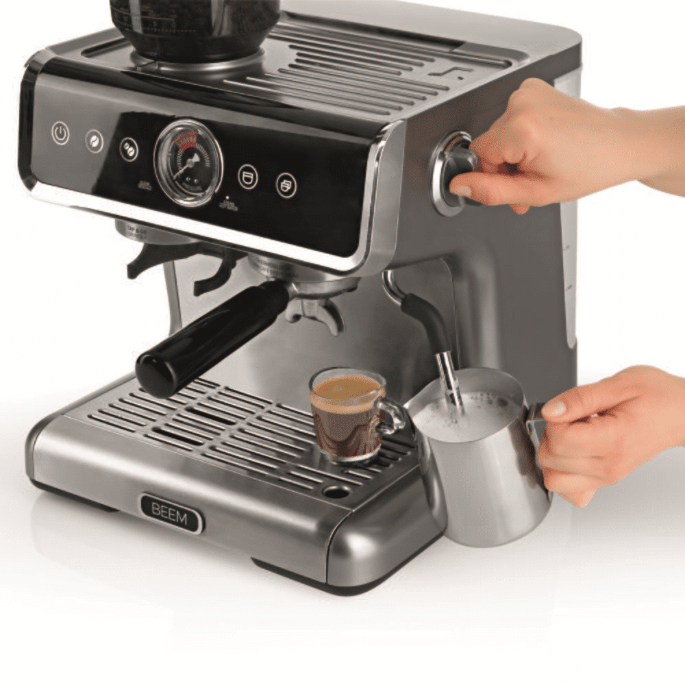 Cu espressorul de la brandul german BEEM aveti parte de experiente profesionale de barista chiar la dumneavoastra acasa! Espresso Grind Profession poate prepara o varietate de bauturi de cafea, inclusiv espresso, latte macchiato, cappuccino si americano, precum si ciocolata calda si ceai. Acesta poate folosi atat cafea boabe, cat si cafea macinata pentru a va putea bucura de aromele unice ale fiecarui tip de cafea.
