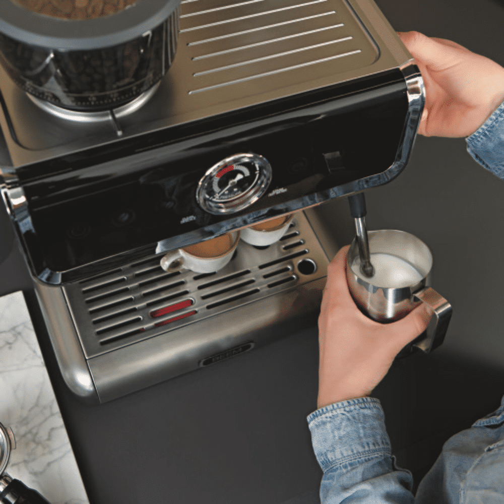 Accesorii incluse: portafiltru 58 mm, tamper pentru espresso, insertie de filtru pentru 1 espresso, insertie de filtru pentru 2 espresso, cana pentru spuma de lapte, perie de curatare, ac pentru curatarea duzei