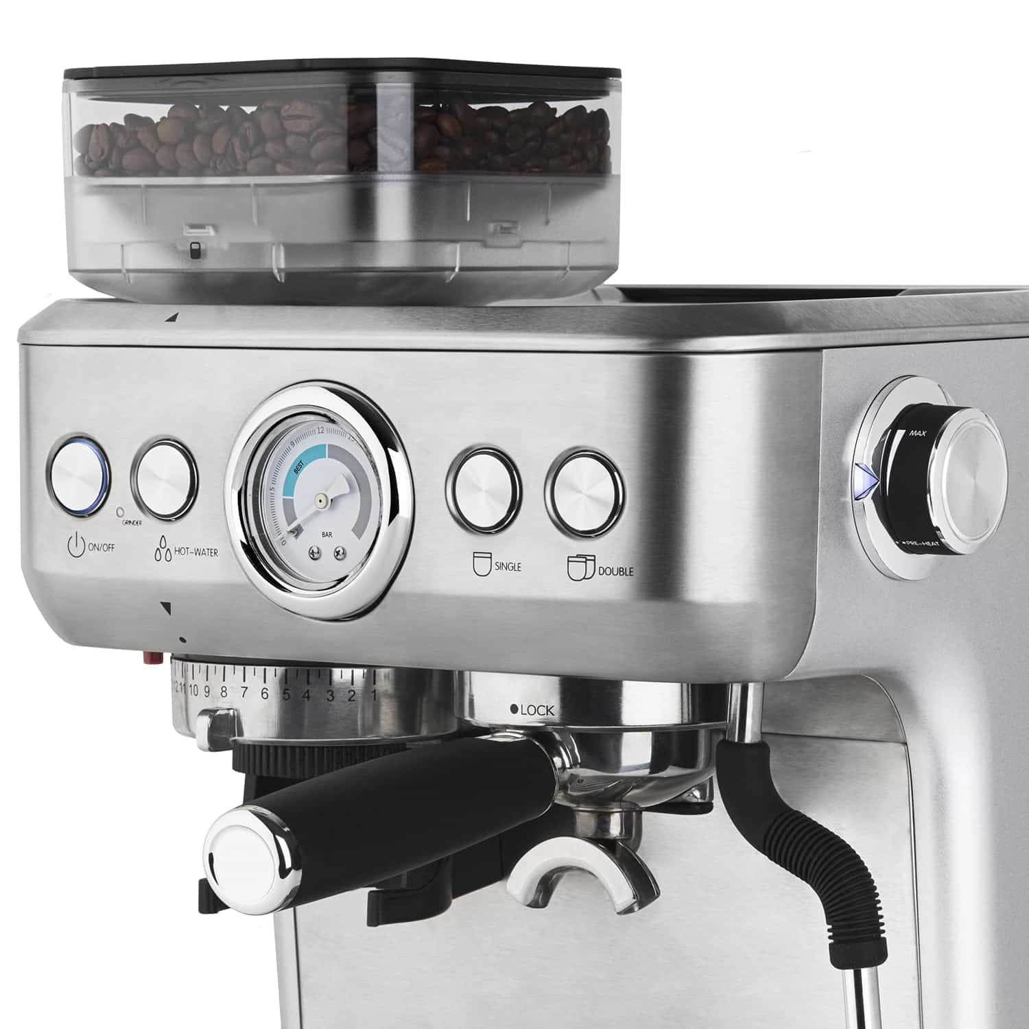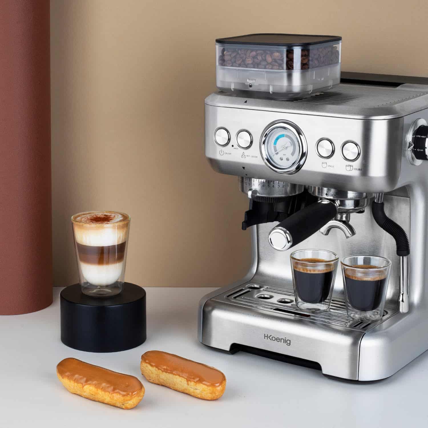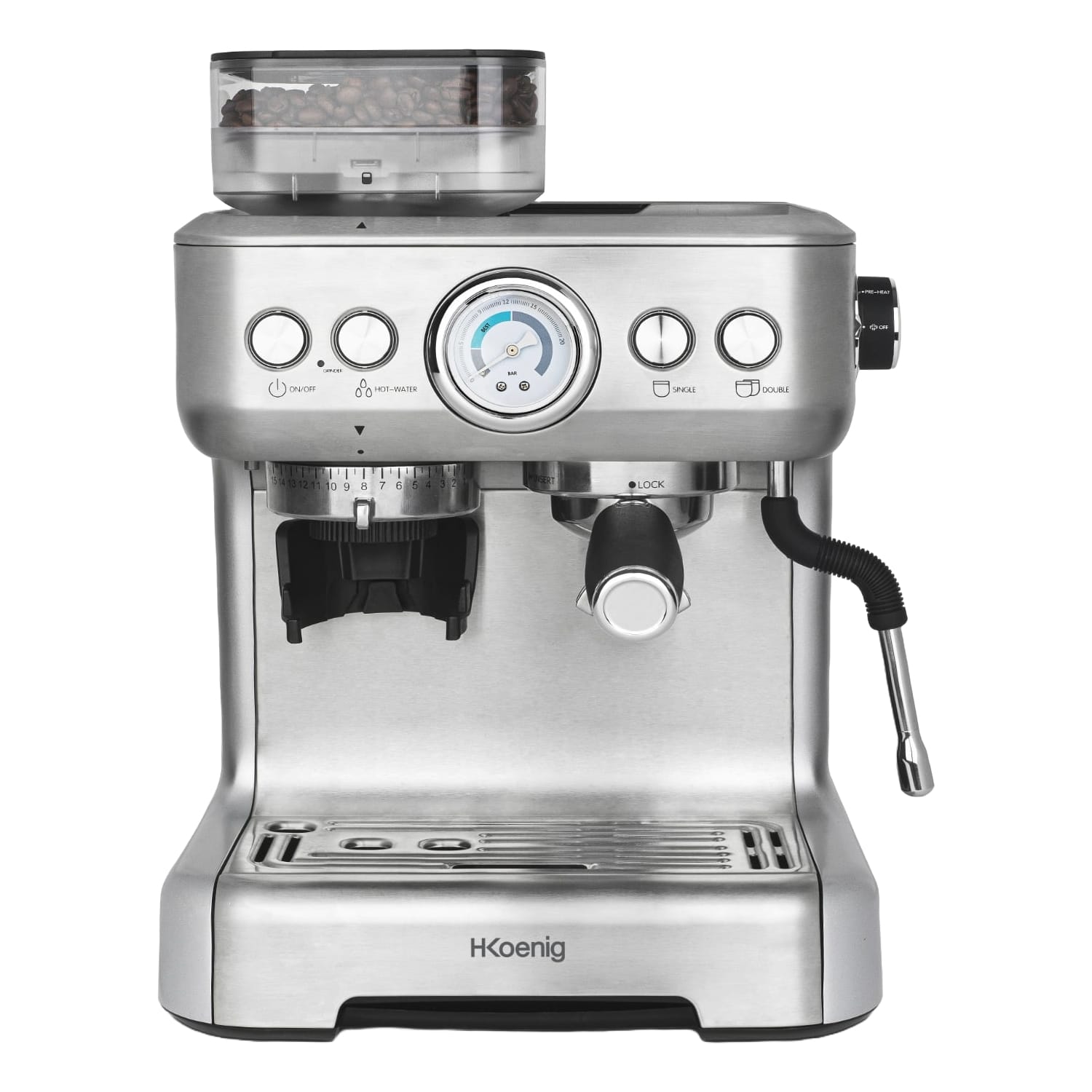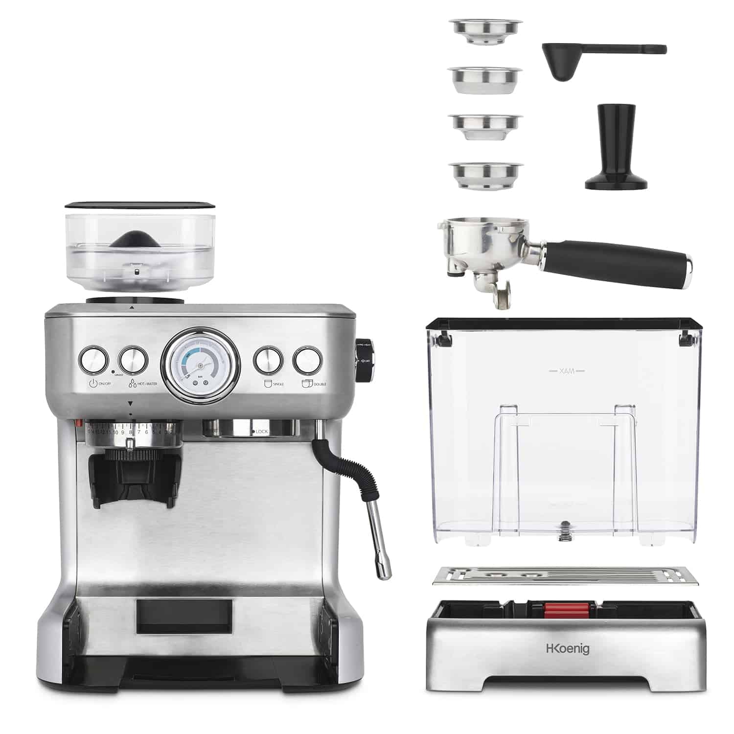 Prepararea cafelei nu a fost niciodata mai usoara si rapida, cu ajutorul esspresorului cu rasnita incorporabila de la H.Koenig diminetile vor fi mult mai placute, fie ca alegeti sa savurati cafeaua preferata singuri sau cu cei dragi.