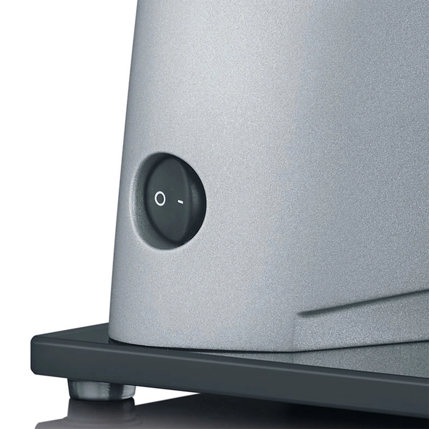 Lama zimtata de Ø17 cm asigura o feliere precisa si uniforma, pe cand motorul cu sistem Eco-Power adapteaza consumul energetic in functie de produs, pentru a economisi energie. In plus, grosimea variabila, intre 0 – 20 mm, iti ofera flexibilitate in functie de preferinte: de la fasii subtiri pana la bucati groase. Lama si mecanismul ce o ghideaza incurajeaza o taiere usoara.