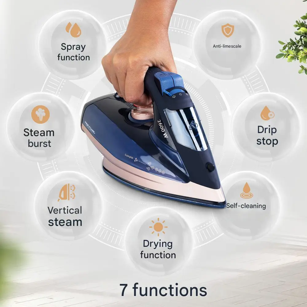 Fierul de calcat cu aburi este dotat cu un recipient de apa generos, ce iti permite sa calci haine fara opriri frecvente. Combinatia dintre designul jucaus si functiile sale, transforma fierul de calcat intr-un ajutor de nadejde in casa.