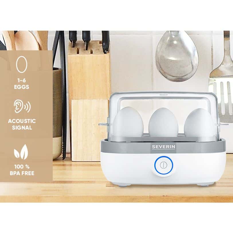 Prepararea oualor perfect fierte nu a fost niciodata mai usoara! Cu fierbatorul de la brandul german Severin acest proces va fi mult mai usor. Bucurati-va de un mic dejun delicios impreuna cu familia. Fierbatorul are o capacitate de preparare de maxim 6 oua.