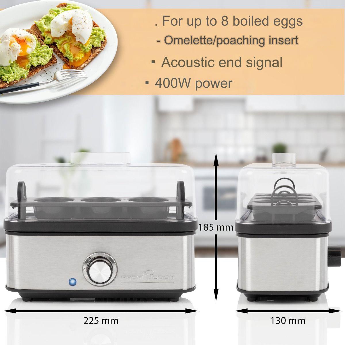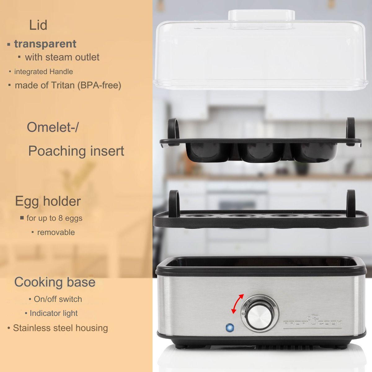 Prepararea oualor perfect fierte nu a fost niciodata mai usoara! Cu fierbatorul de la brandul german Proficook acest proces va fi mult mai usor. Bucura-te de un mic dejun delicios impreuna cu familia. Fierbatorul are o capacitate de preparare de maxim 8 oua.