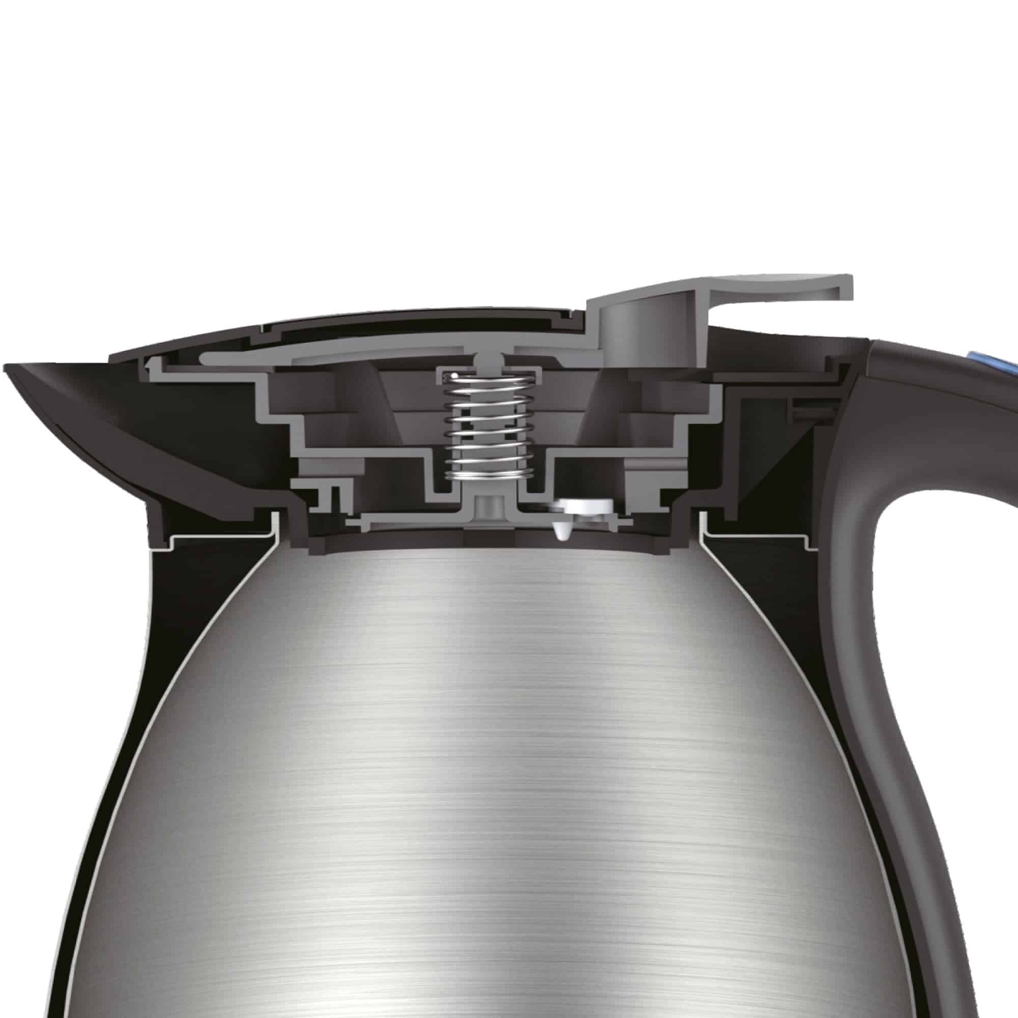 Fierbatorul are un design compact, potrivit in orice bucatarie sau birou. Manerul ergonomic asigura o prindere ferma iar capacul a fost special creat pentru o turnare usoara a apei fara accidente nedorite.