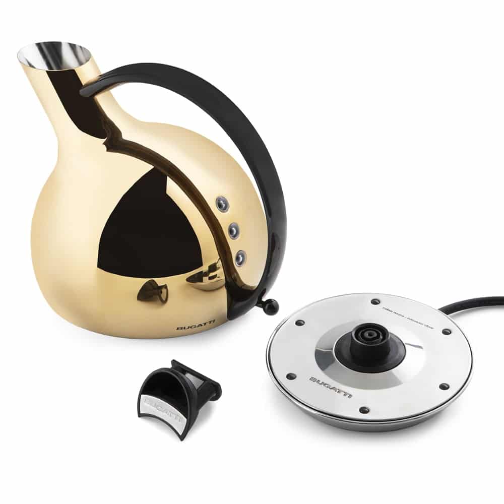 Designul fierbatorului electric Giulietta s-a nascut din contopirea dintre forma geometrica a unei sfere si referinte ale trupului feminin. Proiectat de Andreas Seegatz, acesta devine parte din gama Casei Bugatti. Giulietta este o capodopera realizata din otel inoxidabil rezistent, cu o baza rotativa la 360 de grade ce se integreaza perfect cu forma fierbatorului.