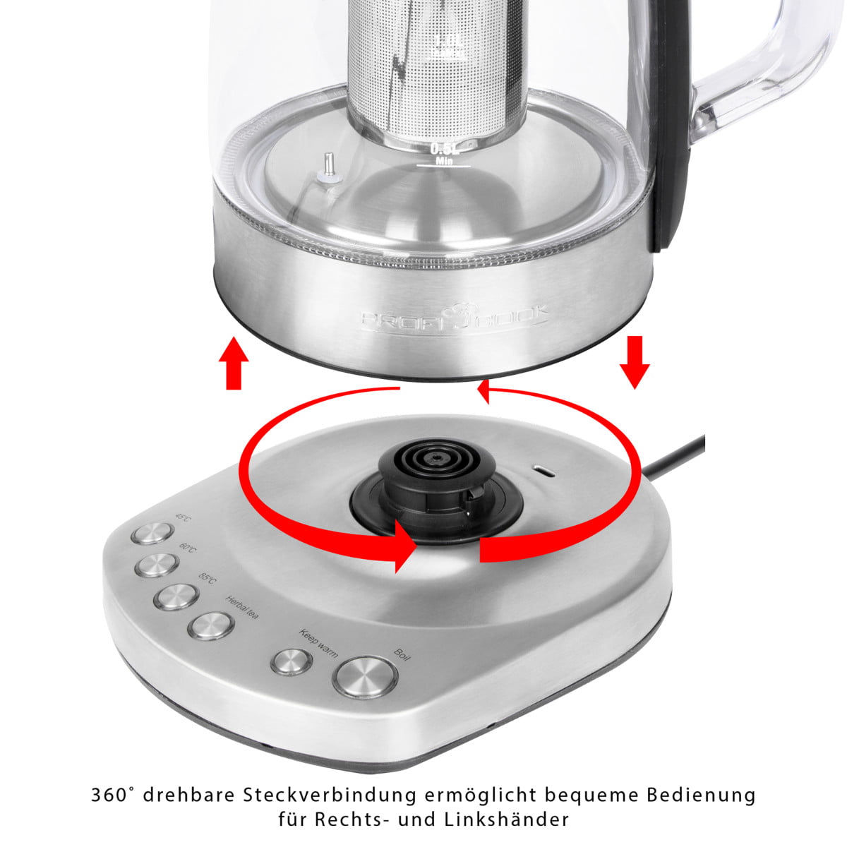 2 IN 1 – Cu fierbatorul de la ProfiCook veti obtine un ceai puternic cu o capacitate de aprox. 1,5 litri si un filtru de ceai detasabil din otel inoxidabil – pentru o placere perfecta.