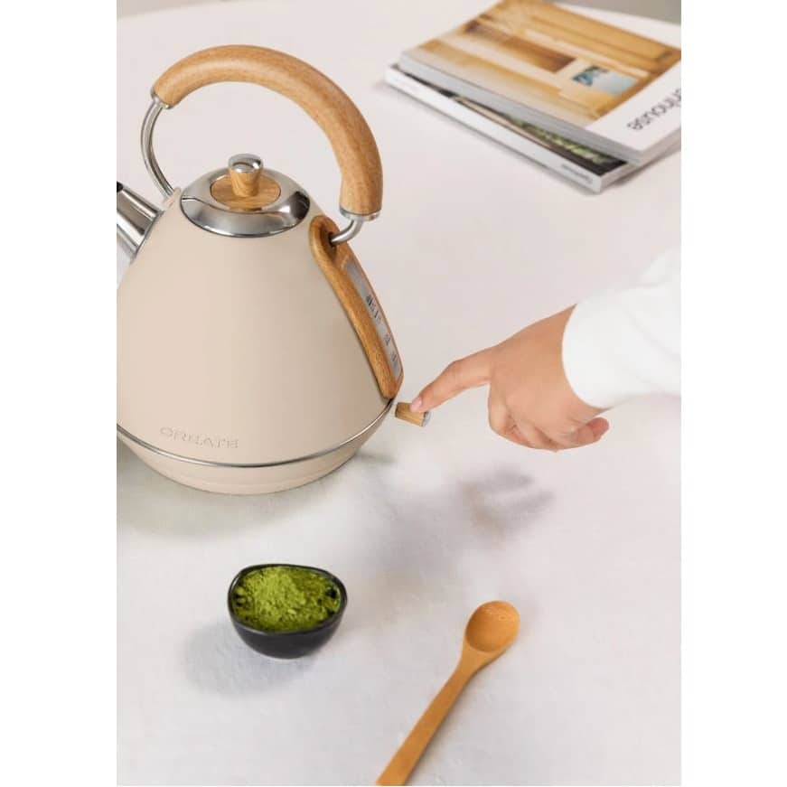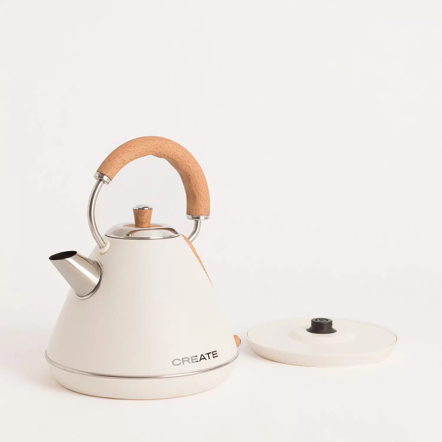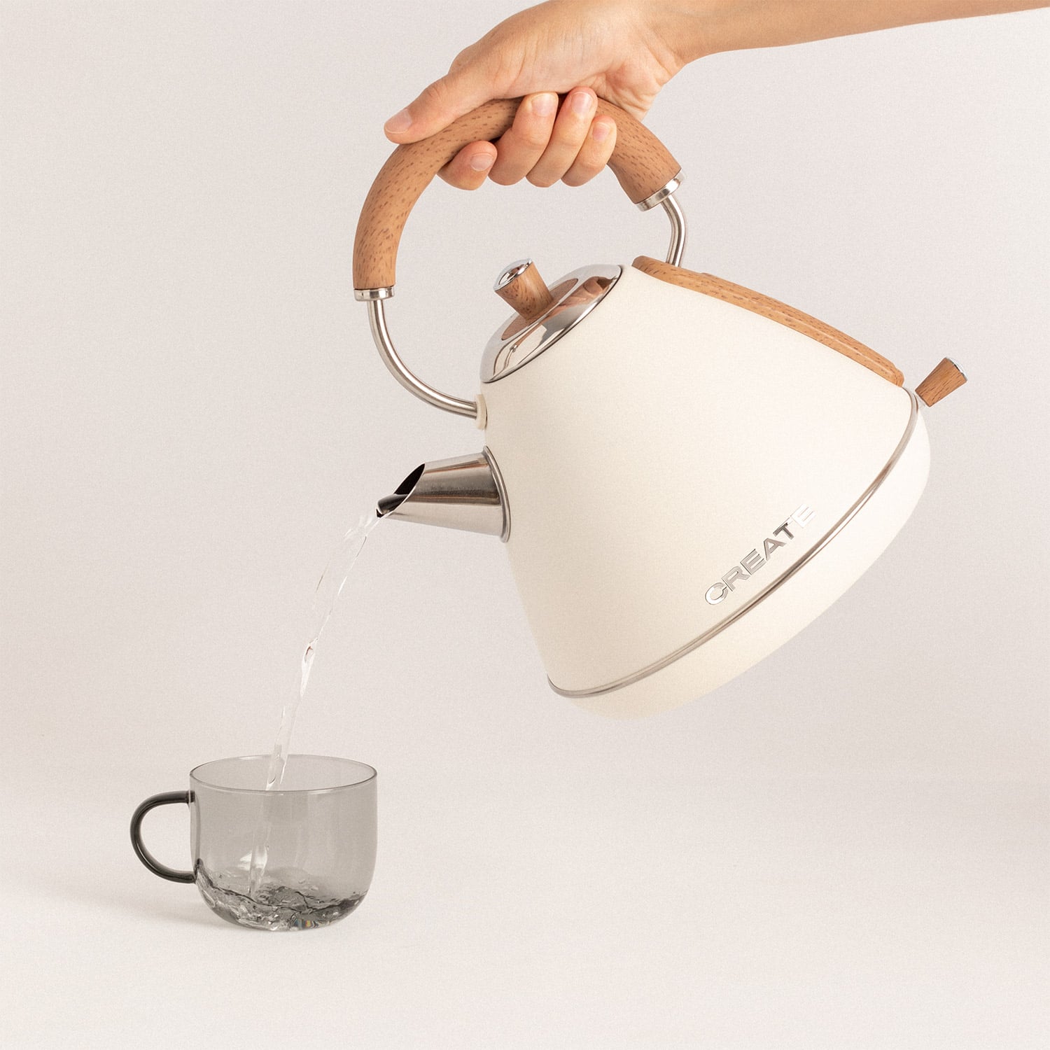 Fierbatorul electric, de la brandul spaniol CREATE, face parte din colectia Retro, avand un aspect vintage cu elemente ce imita lemnul. Capacitatea de 1.7 litri este suficienta pentru ca intreaga familie sa se bucure de o ceasca calda de ceai. Indicatorul de nivel te va ghida.